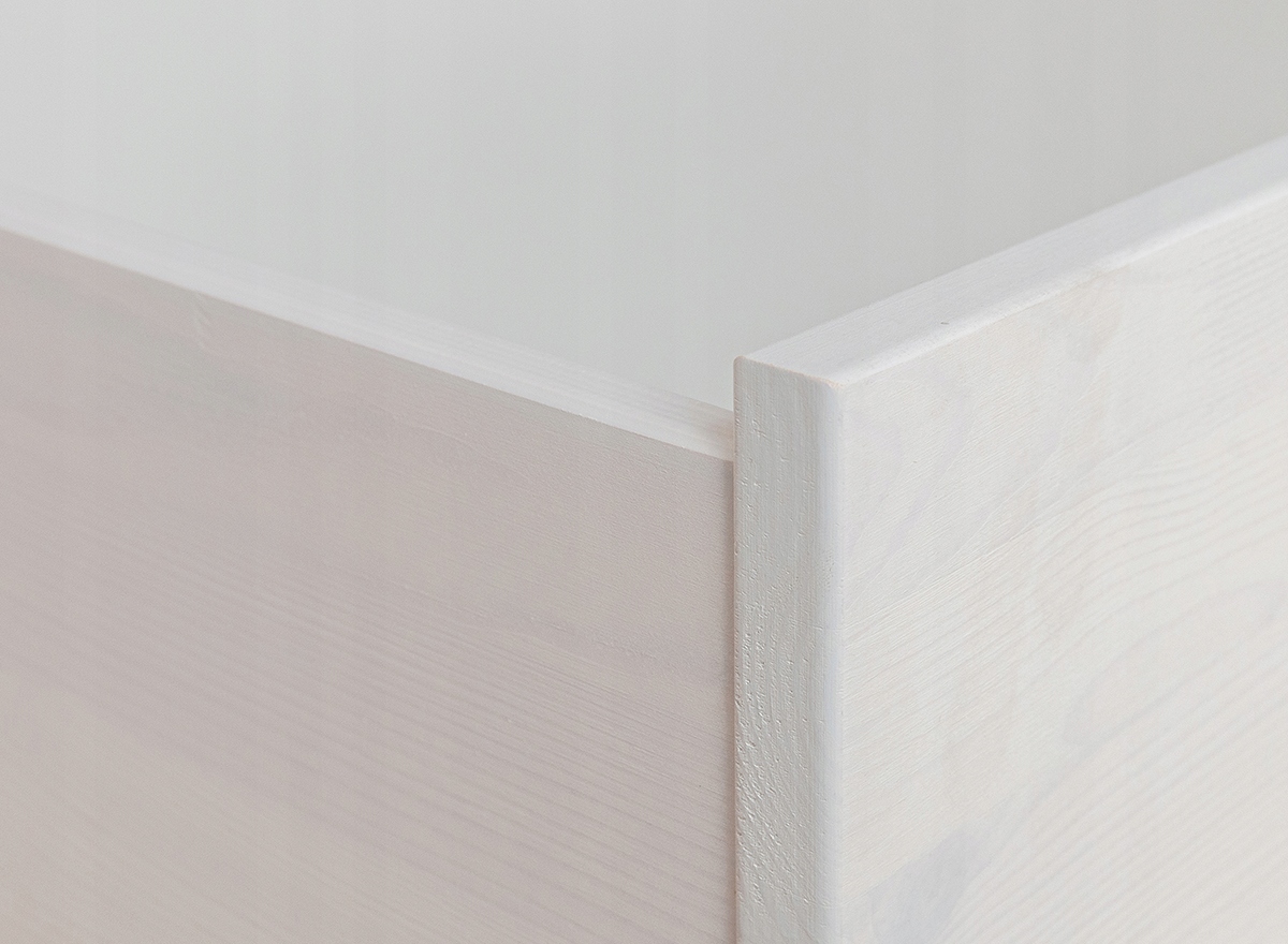 Біла шухляда виготовлена з високоякісної фінської сосни теплого білого кольору (RAL9003). Завдяки екологічним лакам деревина зберігає свій природний вигляд.