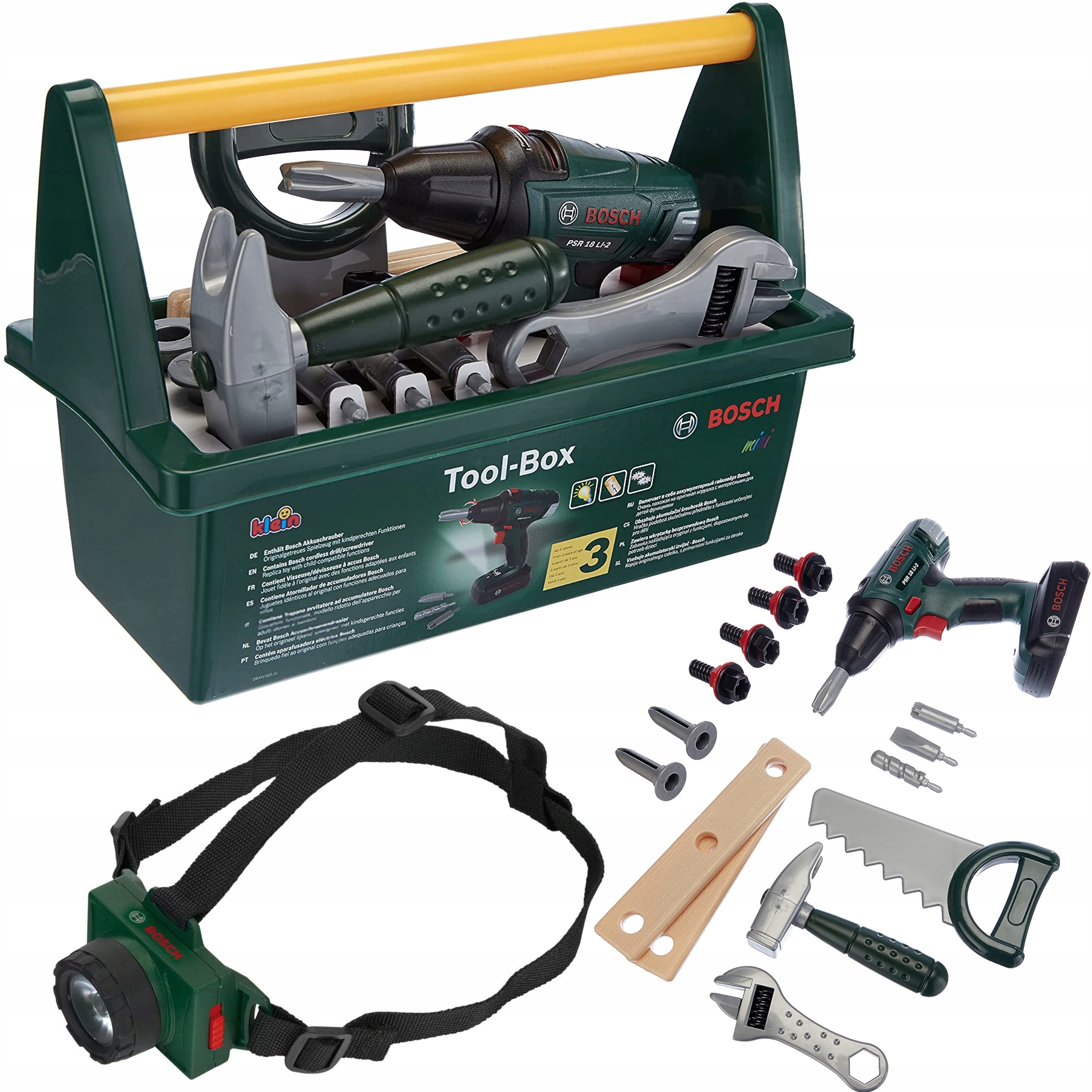 ЯЩИК З ІНСТРУМЕНТАМИ ДЛЯ ДІТЕЙ BOSCH НАБІР ШУРУПОВЕРТ ФРОНТАЛЬНИЙ ЛІХТАРИК