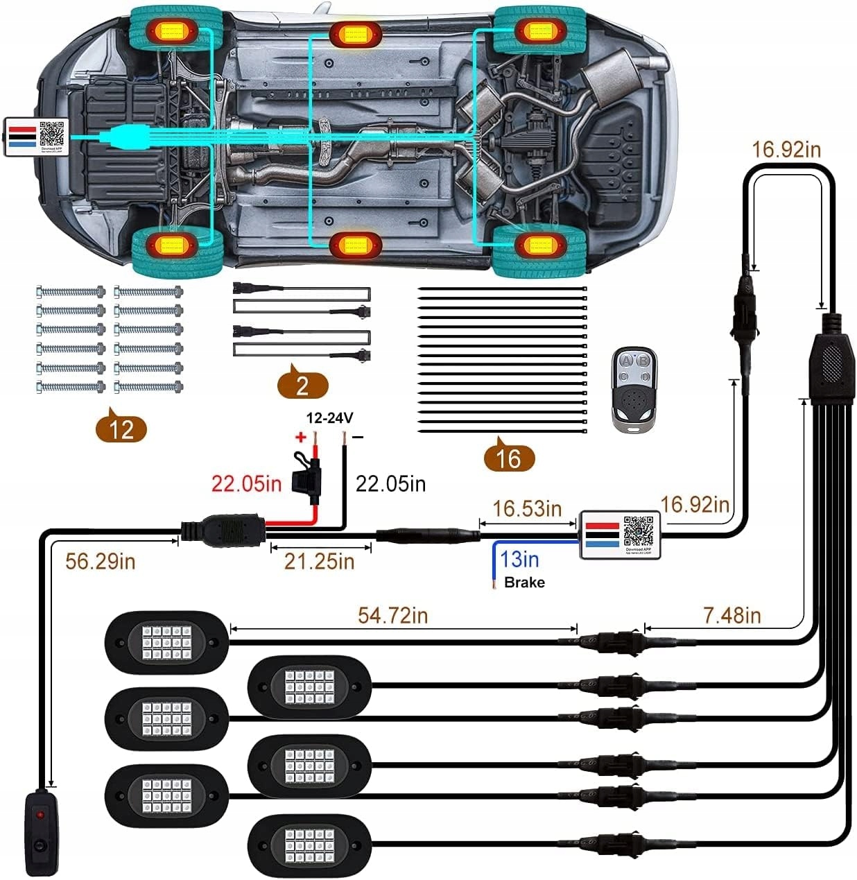 YILAIE CAR СВІТЛОДІОДНЕ ПІДСВІТЛЮВАННЯ 90 СВІТЛОДІОДІВ, ВОДОСТІЙКЕ З ПУЛЬТОМ ДИСТАНЦІЙНОГО КЕРУВАННЯ