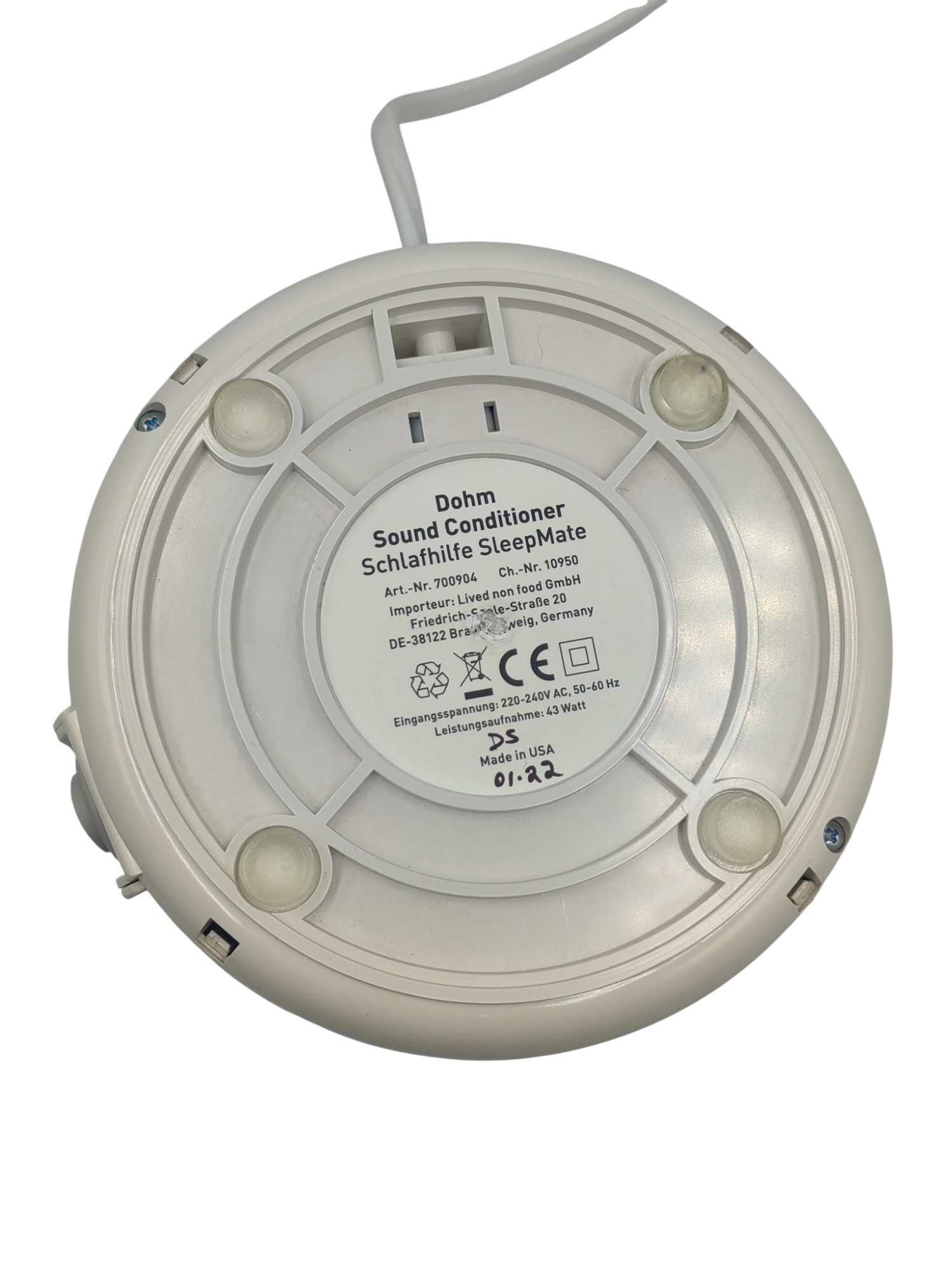 Звукова машина Dohm використовується для вимикання небажаних і неконтрольованих звуків, які заважають сну, спокою або концентрації. Він підключений до джерела живлення та виробляє так званий білий шум, який, як доведено, проникає через широкий діапазон частот і перешкод.