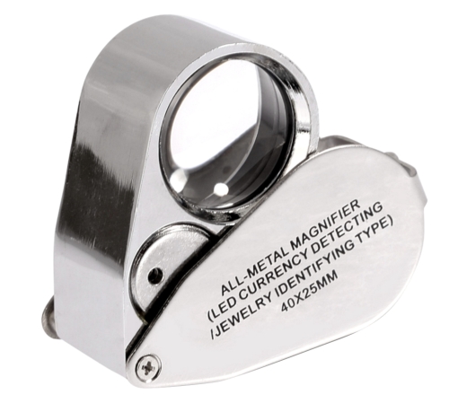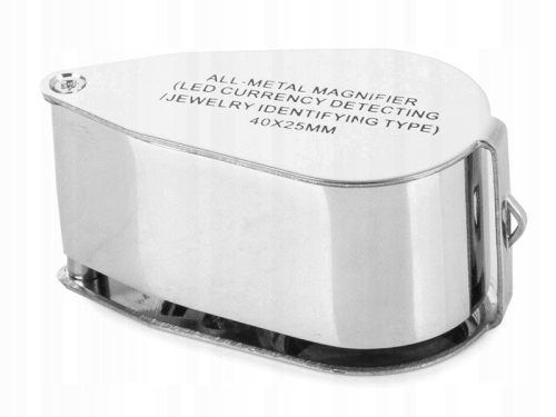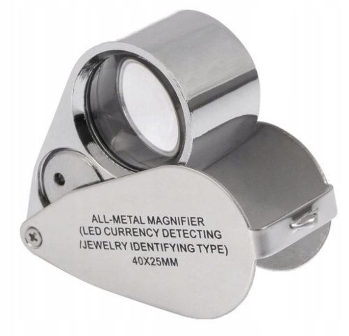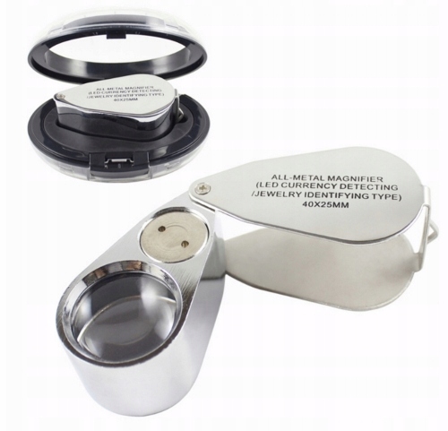 ЮВЕЛІРНА ЛУПА, СКЛАДНА, З ПІДСВІЧЕННЯМ МЕТАЛУ, 40X 25 ММ, LED UV, СУДОВИЙ КОРПУС