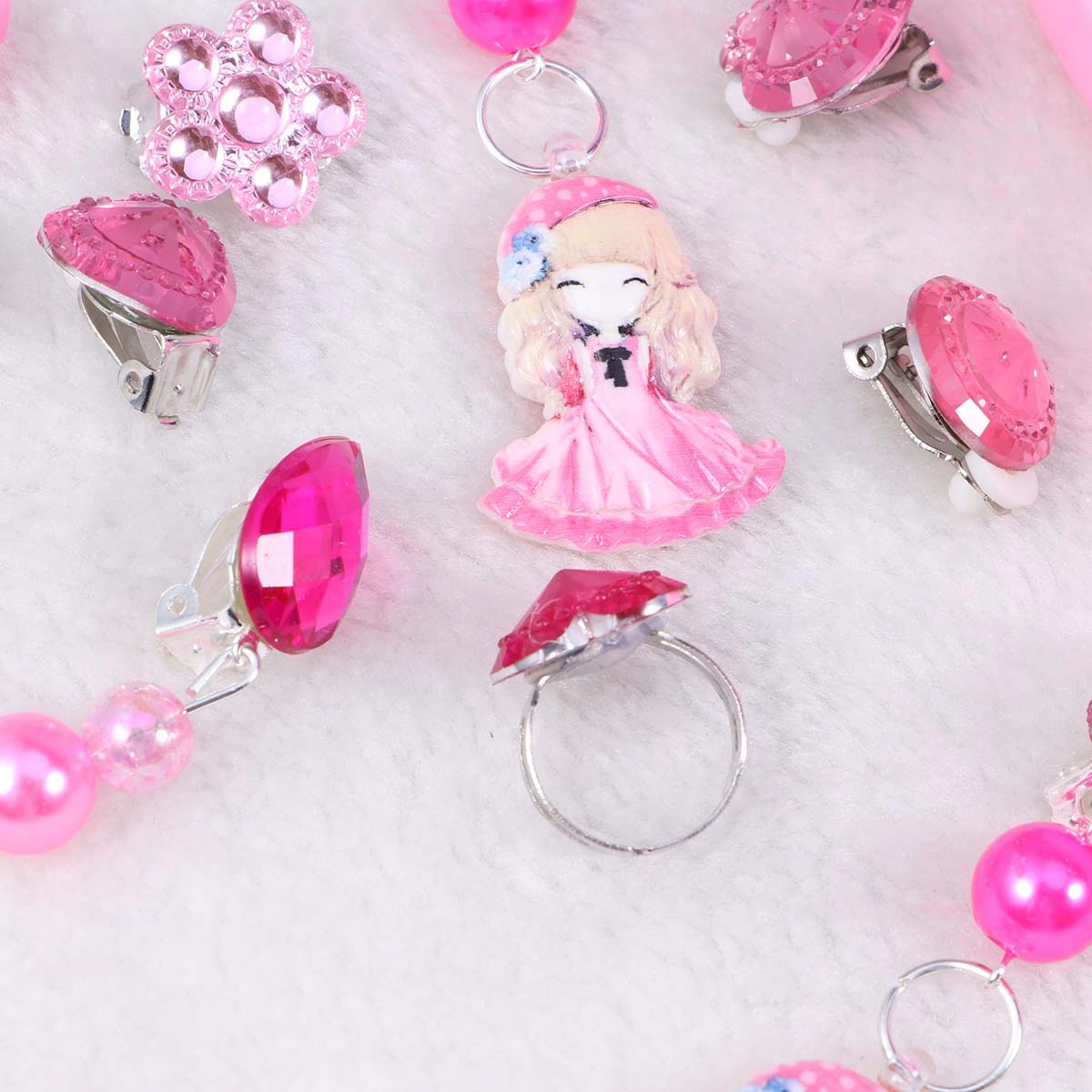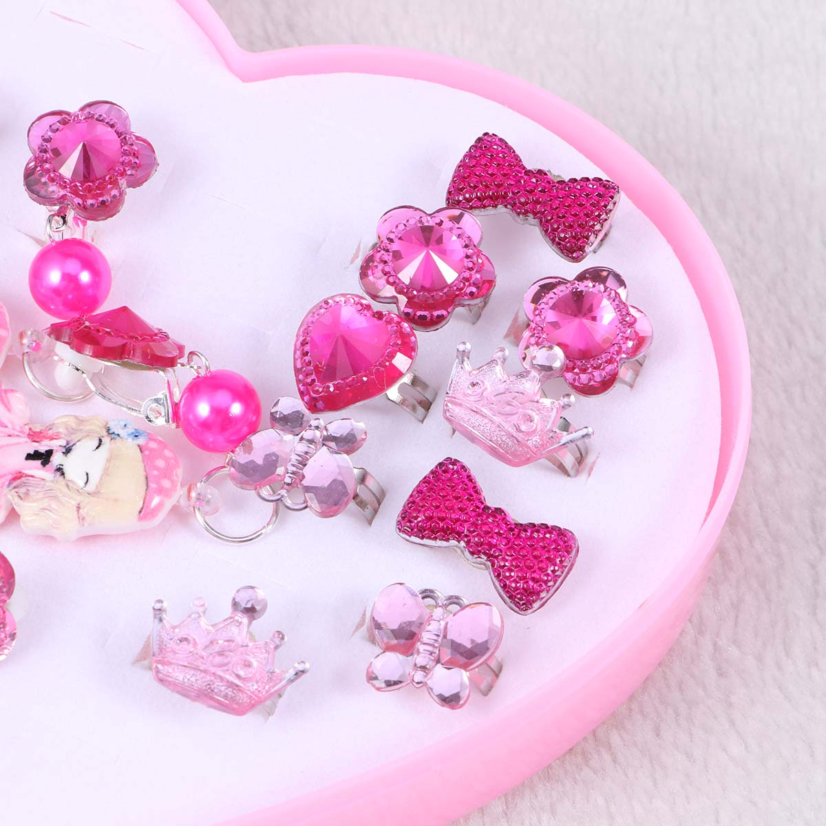 Це набір скриньок для дівчаток. Цей набір прикрас розроблений спеціально для дівчат. Дітям дуже сподобається. Він упакований в подарункову коробку у формі серця, це хороший подарунок для вашої принцеси. Вся продукція перевірена та безпечна для дітей.
