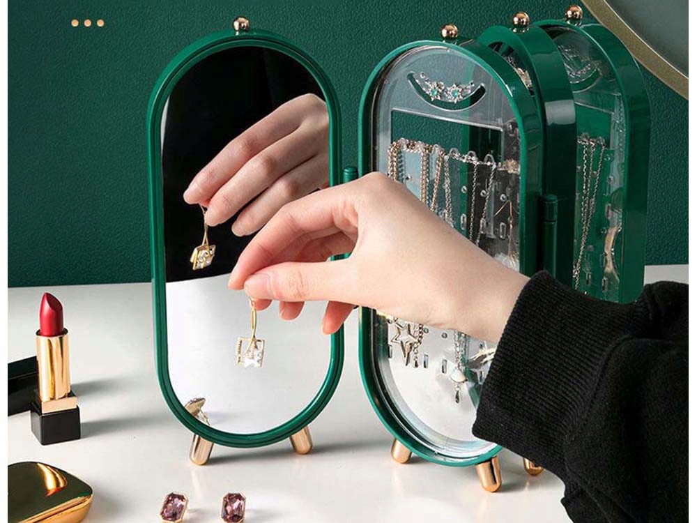 Наш органайзер пропонує багато точно розроблених відділень, що означає, що ви знайдете ідеальне місце для кожної каблучки, намиста чи сережок. Завдяки використанню дзеркала ви не тільки маєте доступ до своїх улюблених аксесуарів в одному місці, але й можете легко адаптувати свій стиль.
