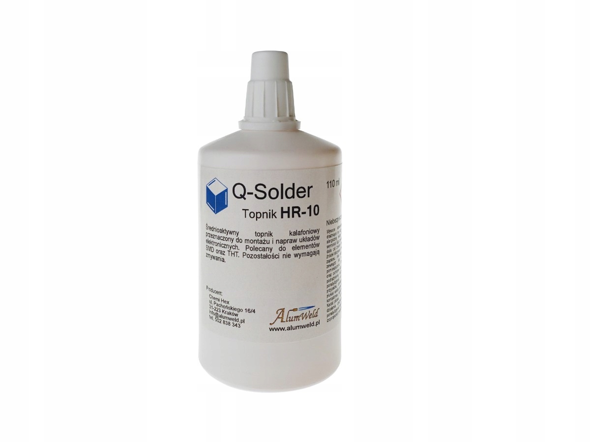 Простий в дозуванні, середньоактивний гель-флюс Q-Solder призначений для паяння систем SMD. Містить м'які органічні активатори (без галогенів), тому залишки пайки не викликають корозії. При необхідності їх можна видалити ізопропіловим (ІПС) або етиловим спиртом.