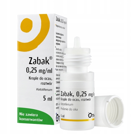 Забак — очні краплі у формі розчину без консервантів, що містять кетотифен, який має протиалергічну дію. засіб.