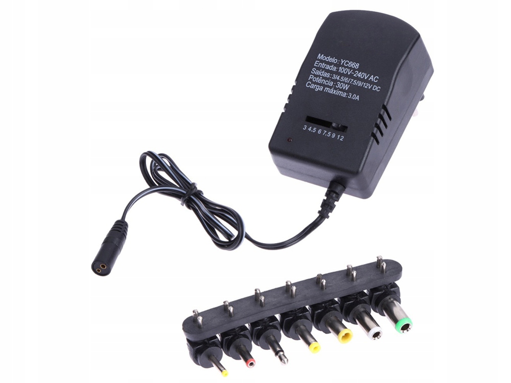 Універсальна багатопідсилки 3V живлення; 4,5 В; 6В; 7,5 В; 9V; 12 В з 7 порадами. підходить для використання з більшістю електронних обладнання: гравців, електронних іграшок, цифрових рамок, ІТ -обладнання, музичних аксесуарів, телевізійних ігор, невеликих побутових приладів та електроніки тощо
