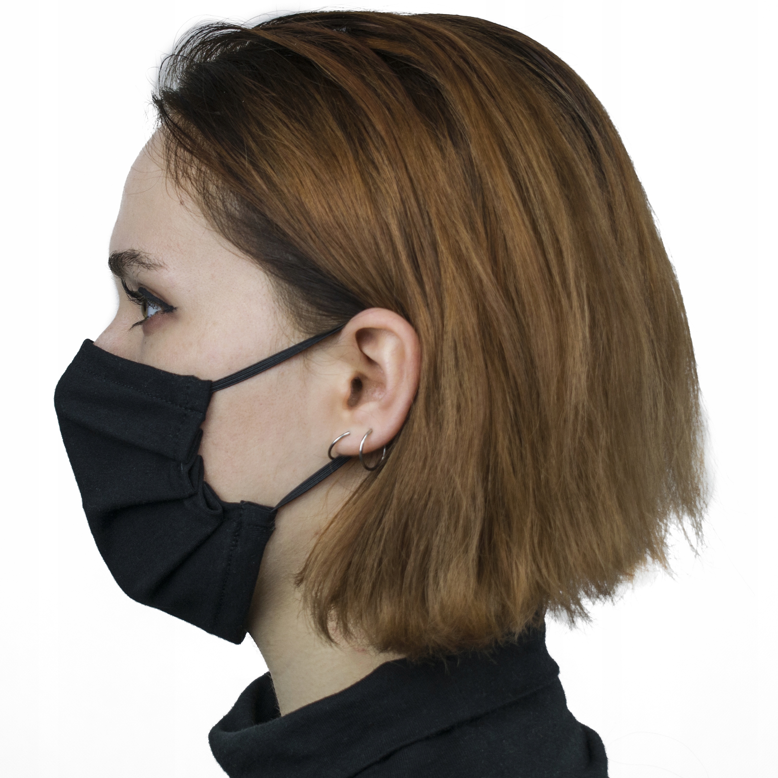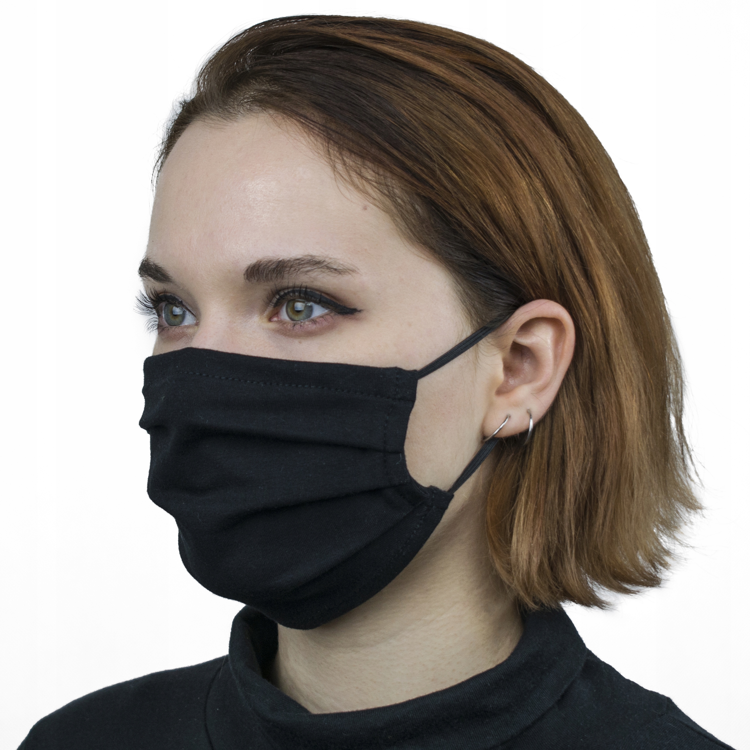 Класична маска для обличчя, яка одягається за вуха, виготовлена зі спеціальної бавовни, яка дуже приємна до шкіри. Маска виготовлена з тканини з трьома складками.