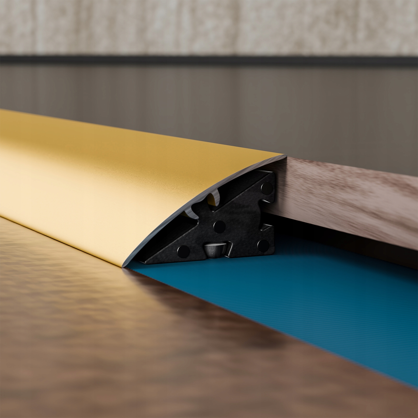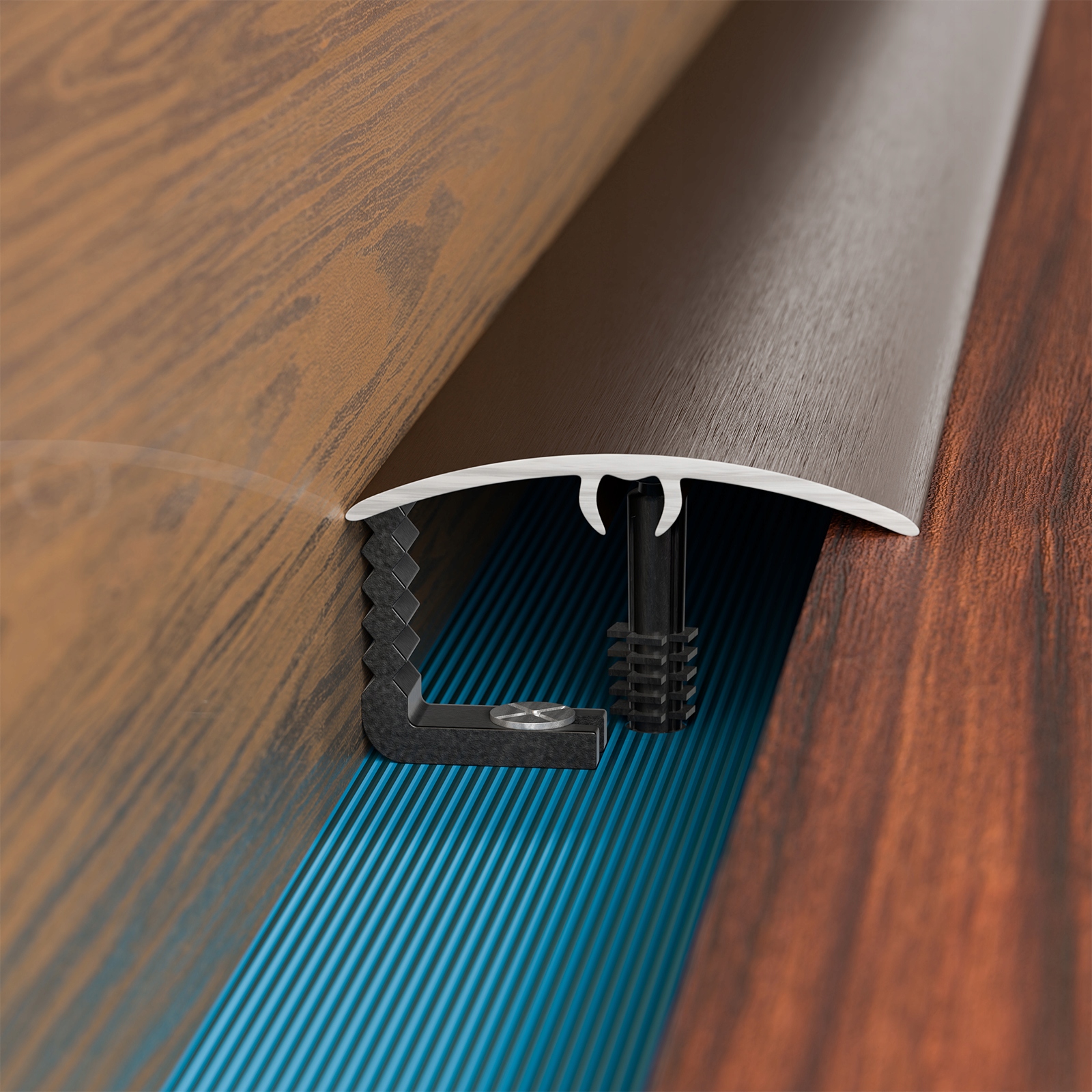 Порогова смуга 5in1 - це універсальне рішення, яке дозволяє естетично та постійне з'єднання різних поверхонь. Він ідеально підходить для використання між килимами, паркетами, теракотою, панелями або ламінованою підлогою. Це допомагає усунути різниці в рівні та покриває прогалини між поверхнями.