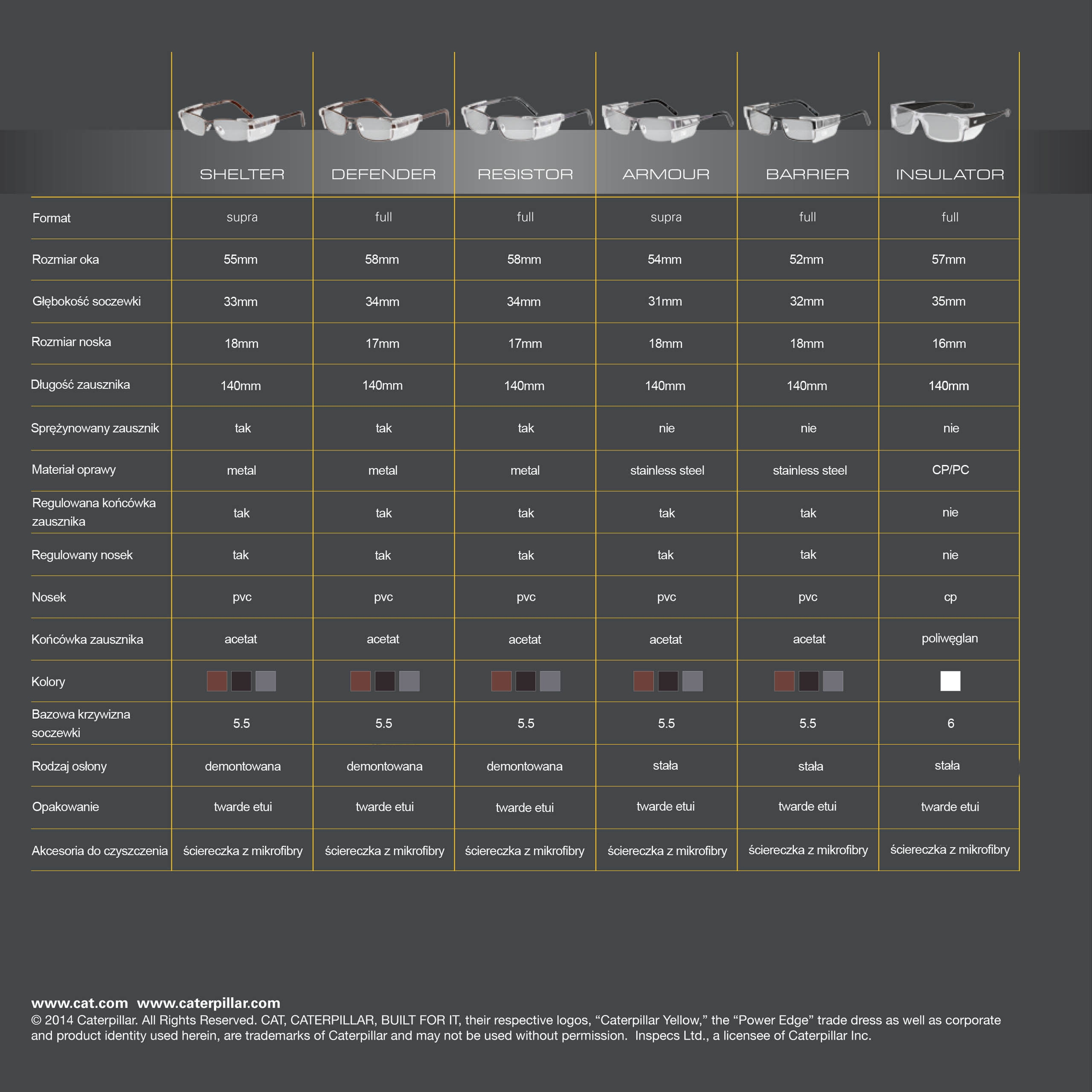 Оправи Cat гарантують оптимальний захист. Завдяки використанню полікарбонатних лінз вони забезпечують найвищий захист очей. Матеріали, з яких виготовлені рами, перевірені на стійкість до хімікатів, пилу та ударів.