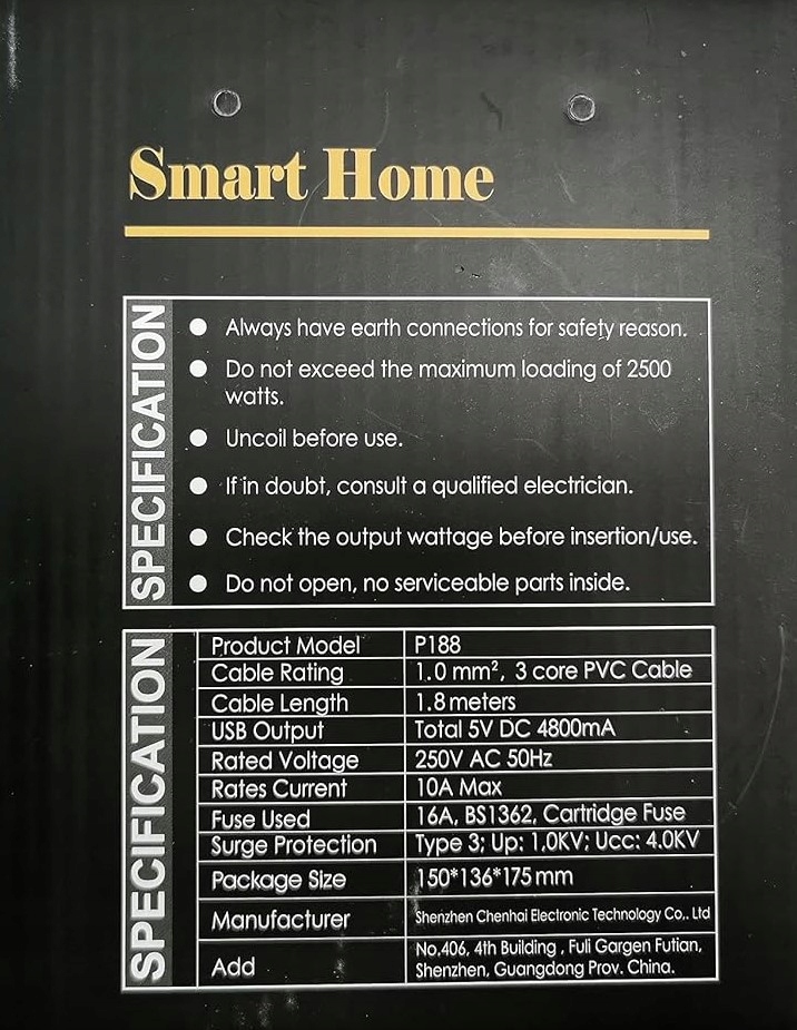 - Вежа розеток USB може розпізнати пристроїв і забезпечує зарядний струм до 4,8 А, підходить для мобільних телефонів, планшетів та інших USB-пристроїв.