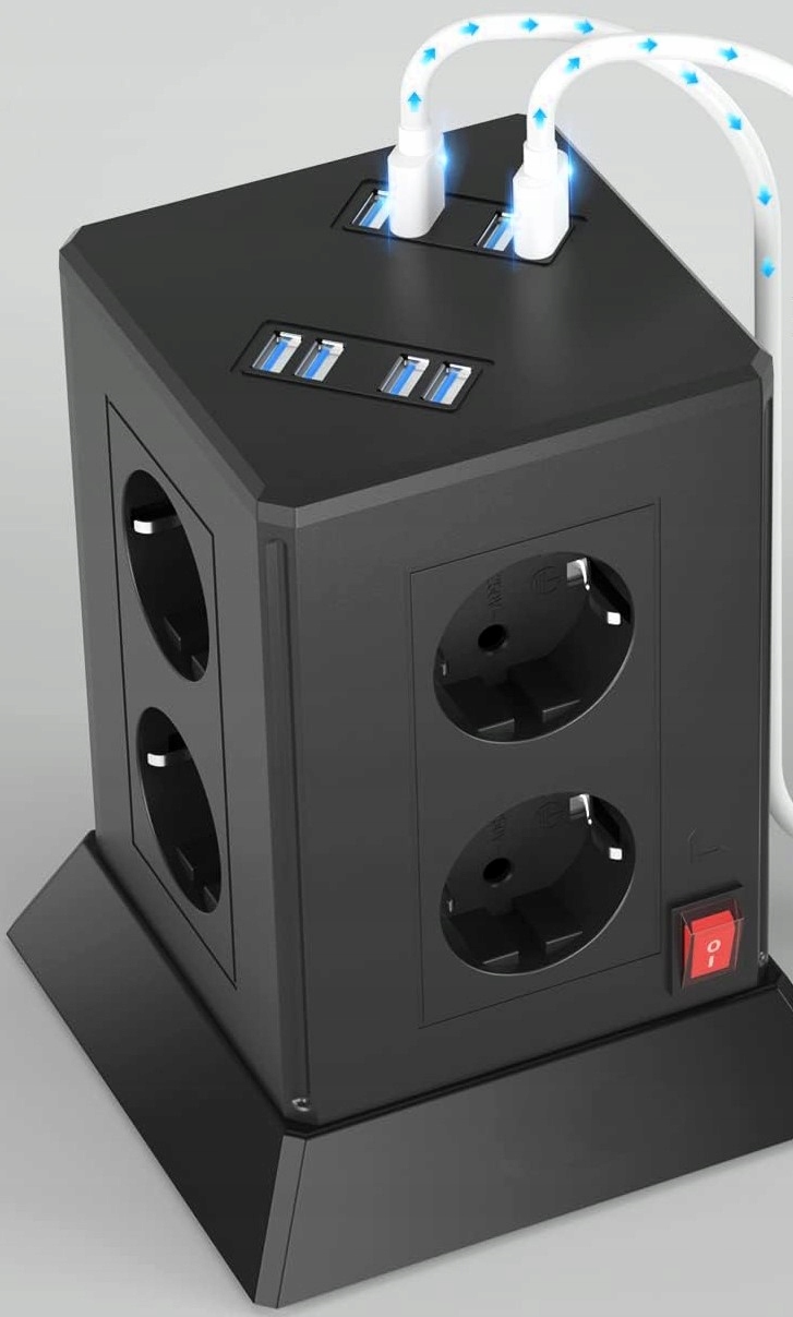 - Подовжувач живлення з 8 традиційними розетками + 8 розетками USB :
