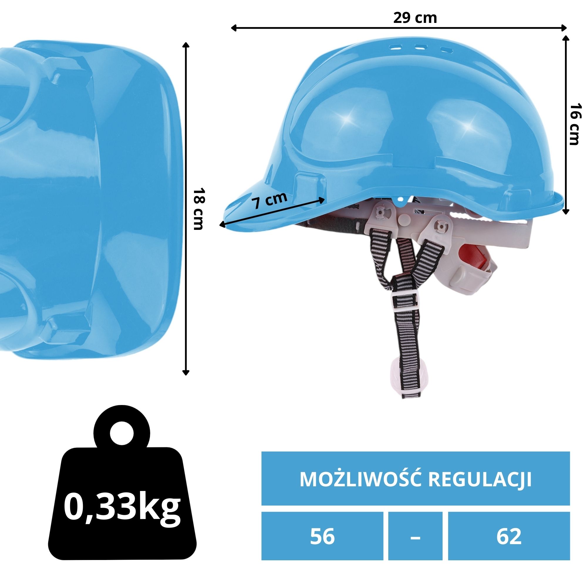 ✅ Універсальне застосування - ідеально підходить для використання на будівельному майданчику, на майстерні, під час садових робіт або інших заходів, що вимагають захисту голови.