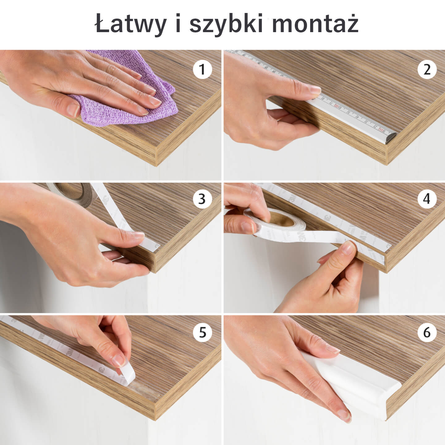 - Широке використання: підходить, серед іншого, для столів, стільниць, шаф, комодів і підвіконь.