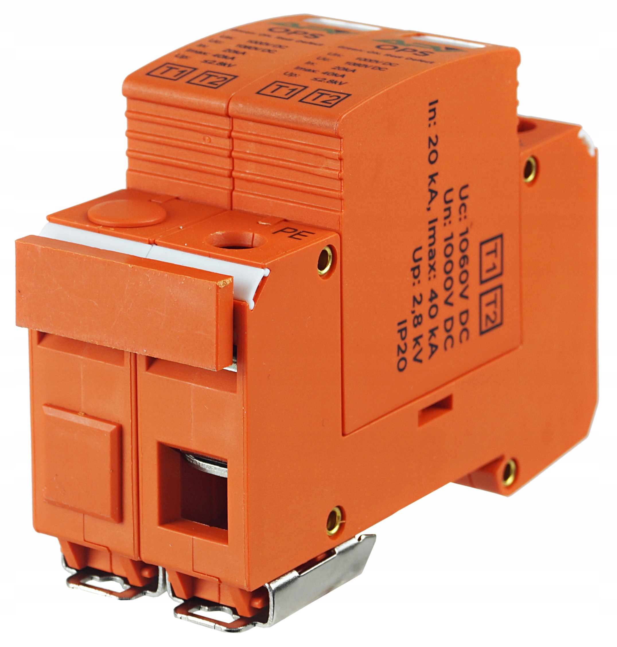 - Захисні пристрої від перенапруги класу B+C (T1+T2) використовуються для захисту фотоелектричних установок від індукованих напруг, напруг комутації та напруг, спричинених атмосферними факторами. Вони оснащені візуальним індикатором спрацьовування (зелений - захист, червоний - захист відсутній).