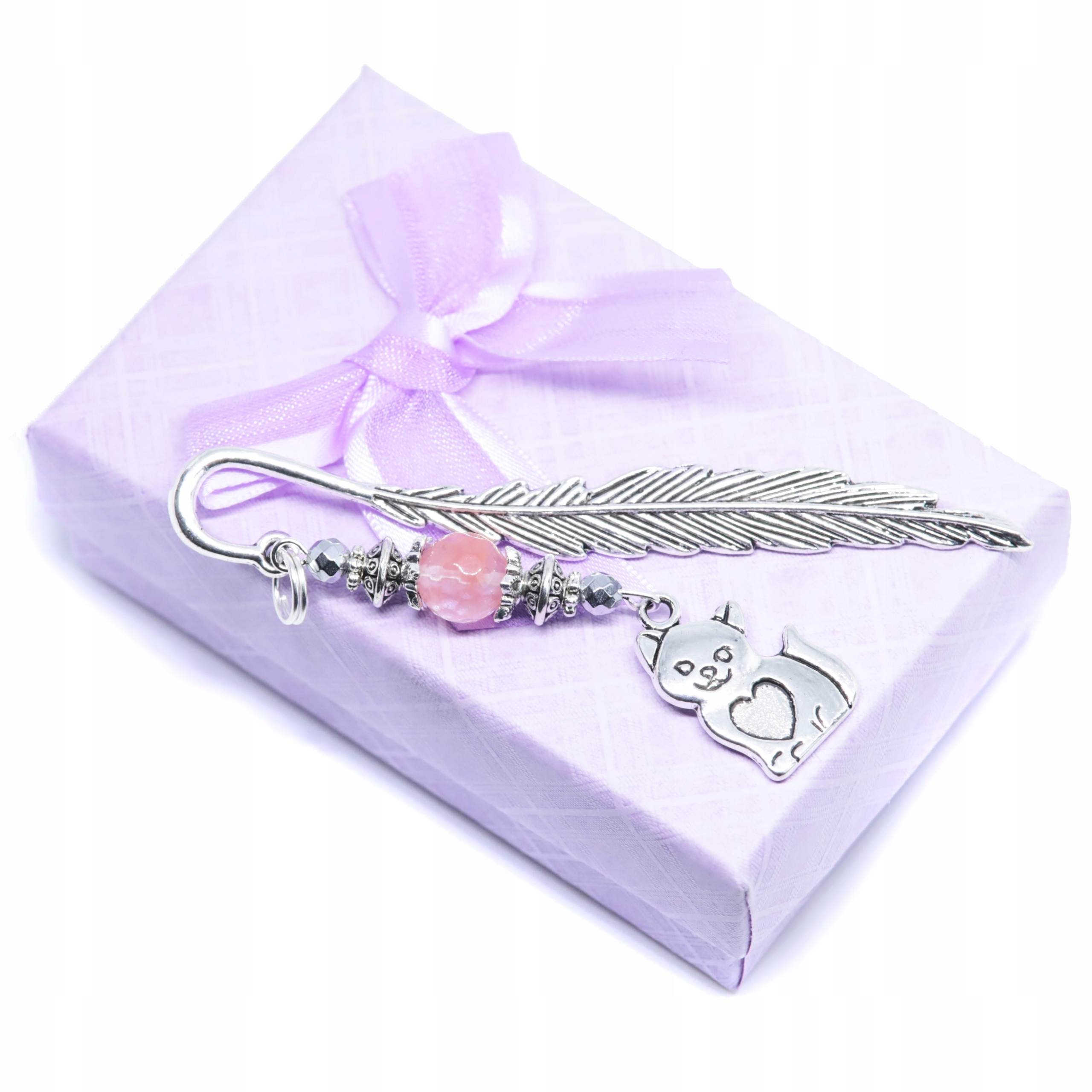 Елегантна закладка з підвіскою у формі кішки з додаванням полуничного кварцу та сріблястого гематиту.