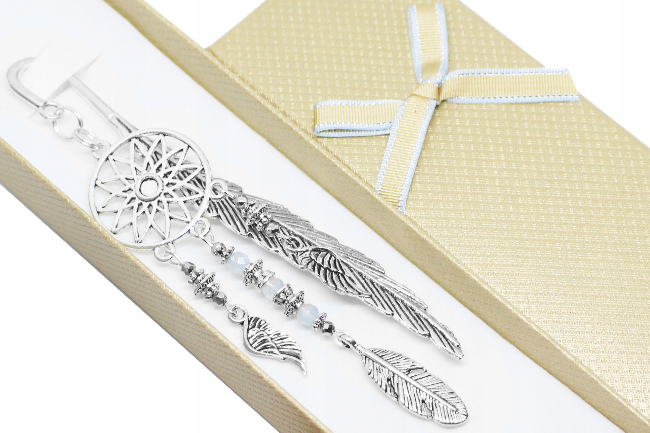 Елегантна закладка з підвіскою у формі ловця снів з додаванням сріблястого гематиту та синього аквамарина.