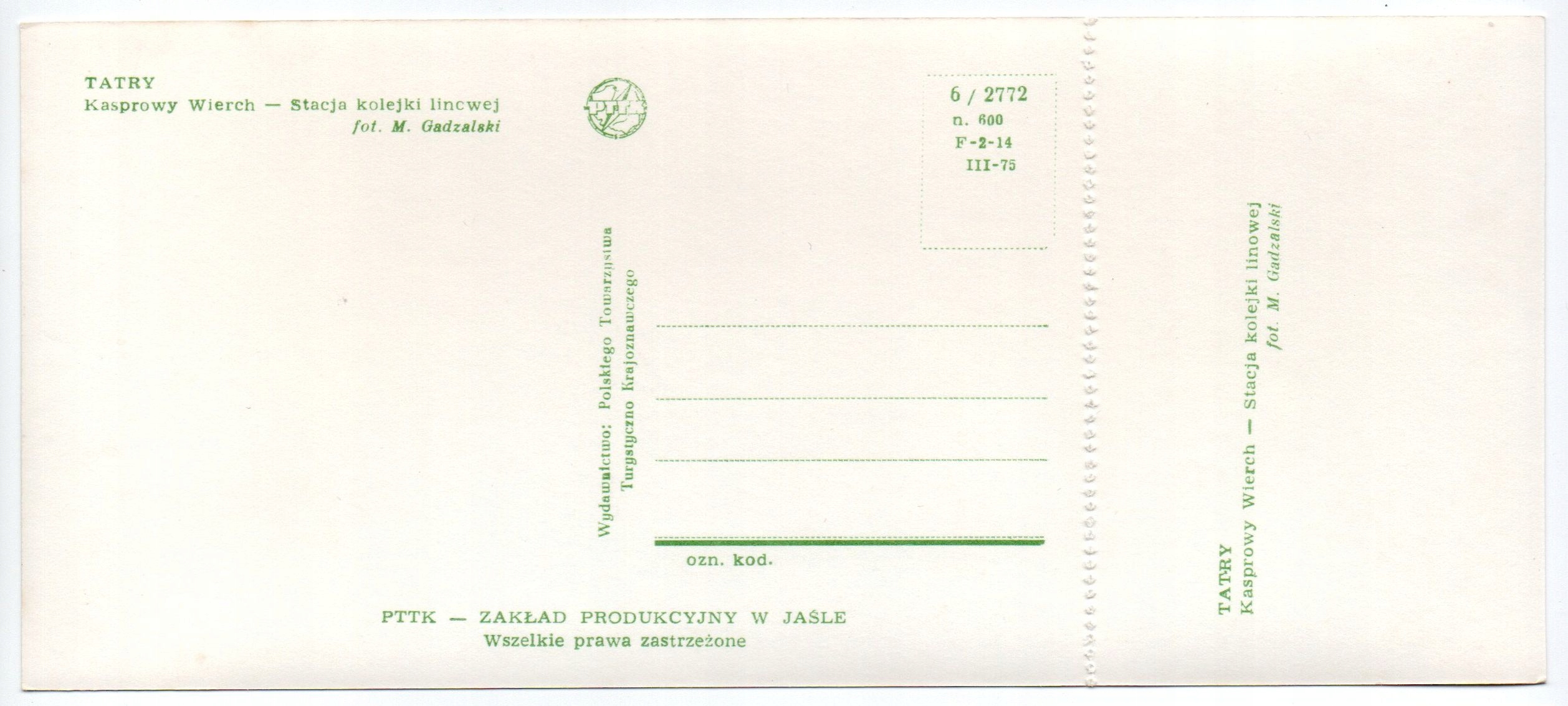 Просматривая «ZAKOPANE TATRAS KASPROWY WIERCH STATION РОЗПІДНИК Б/В. з мініатюрою» данный товар из каталога «Малопольский» вы можете быть уверены, что после оформления заказа, доставки в Украину, вы получите именно то, что заказывали, в оговоренные сроки и европейского качества.