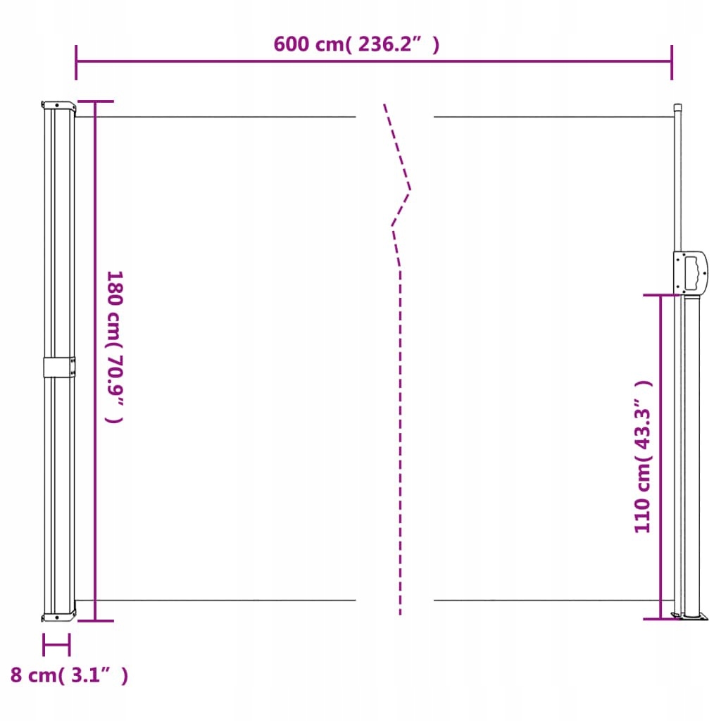 Закрийте бічний тент для антрацитної тераси 180x 600 см