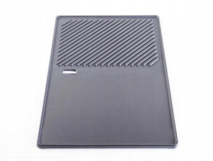 чавун - один з найбільш довговічних матеріалів, що використовуються для грилю. Він сильно стійкий до високих температур та подряпин . Кожна половина чавунної пластини має різний тип поверхні. одна половина гладка і його можна використовувати в основному для нарізаних овочів, яєць та сиру. Друга половина з складками використовується для належного гриль -стейків, більших шматочків овочів та риби.
