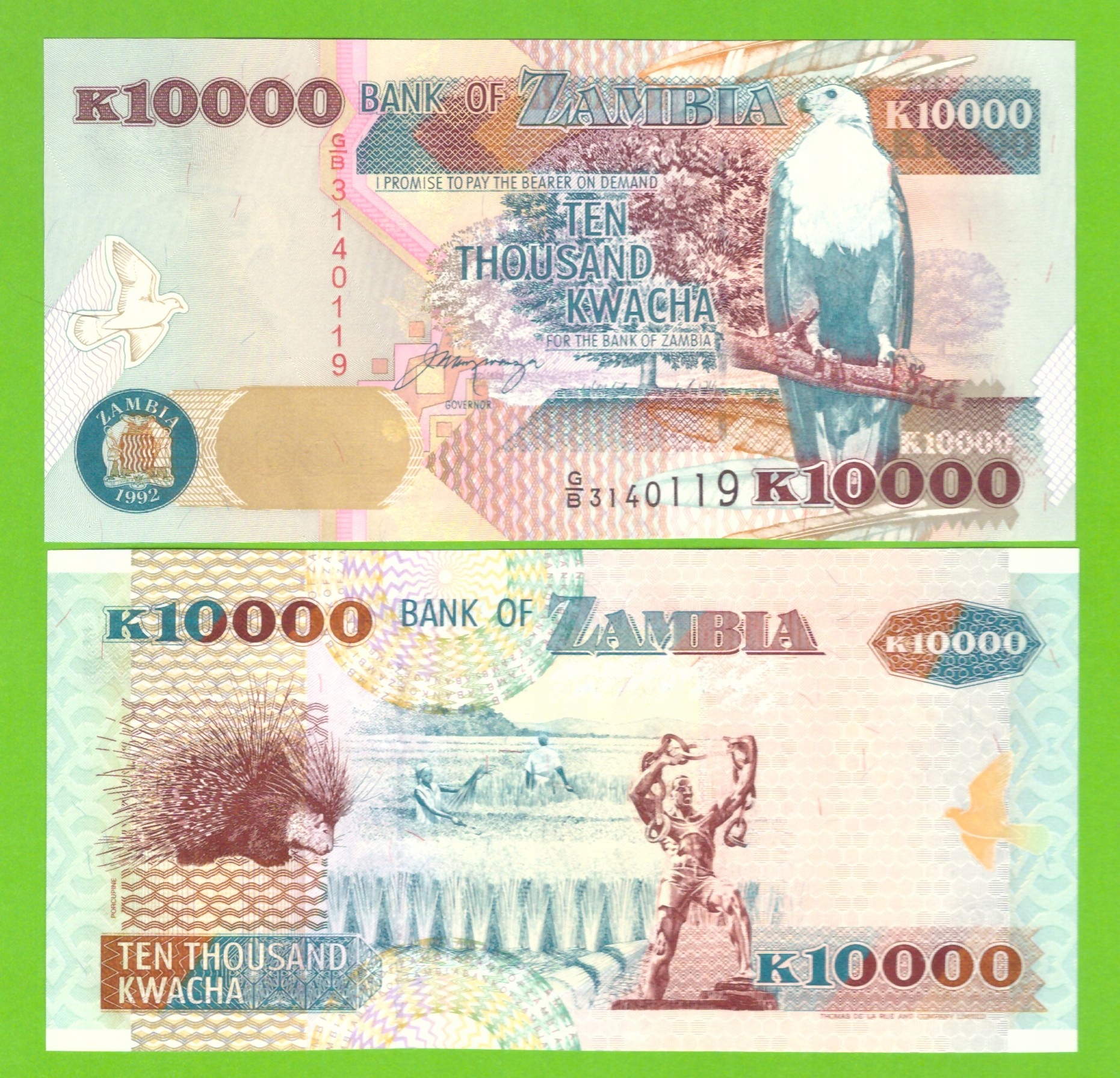 ЗАМБІЯ 10000 KWACHA 1992 P-42a UNC РІДКІСНІСТЬ