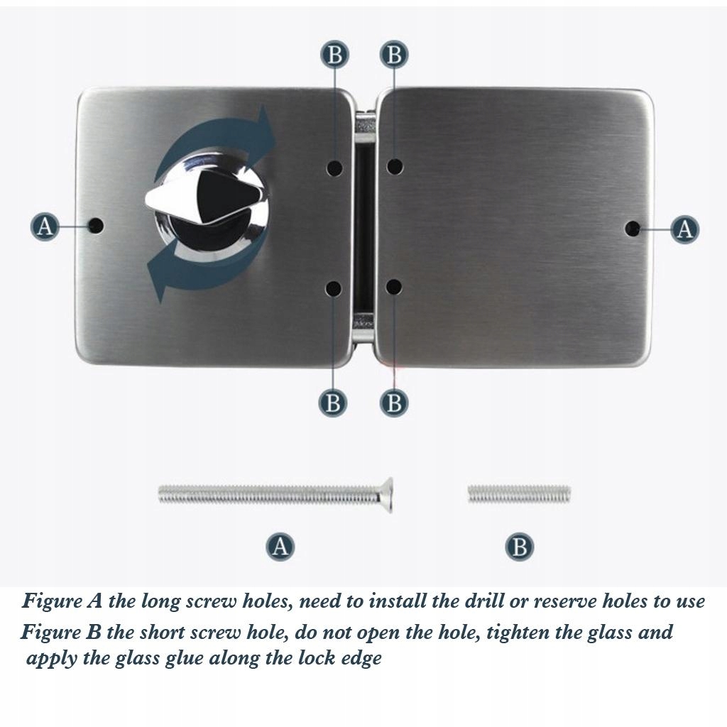 Zamek do szklanych drzwi ze stali nierdzewnej mm 4 śruby Bezpieczniejszy bez wiercenia Wygodny