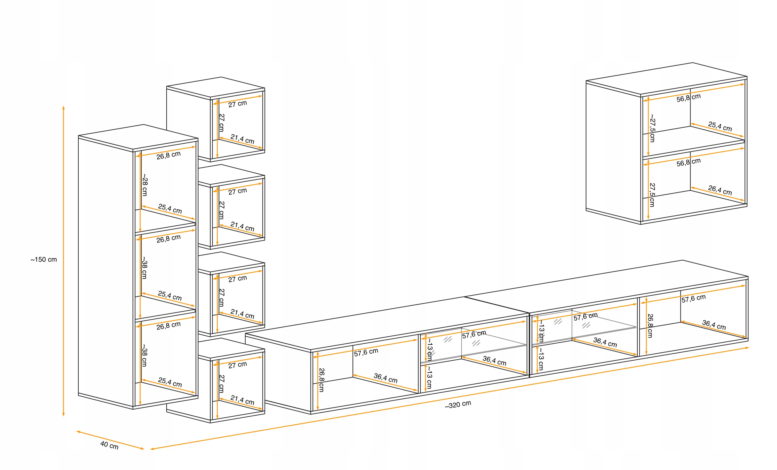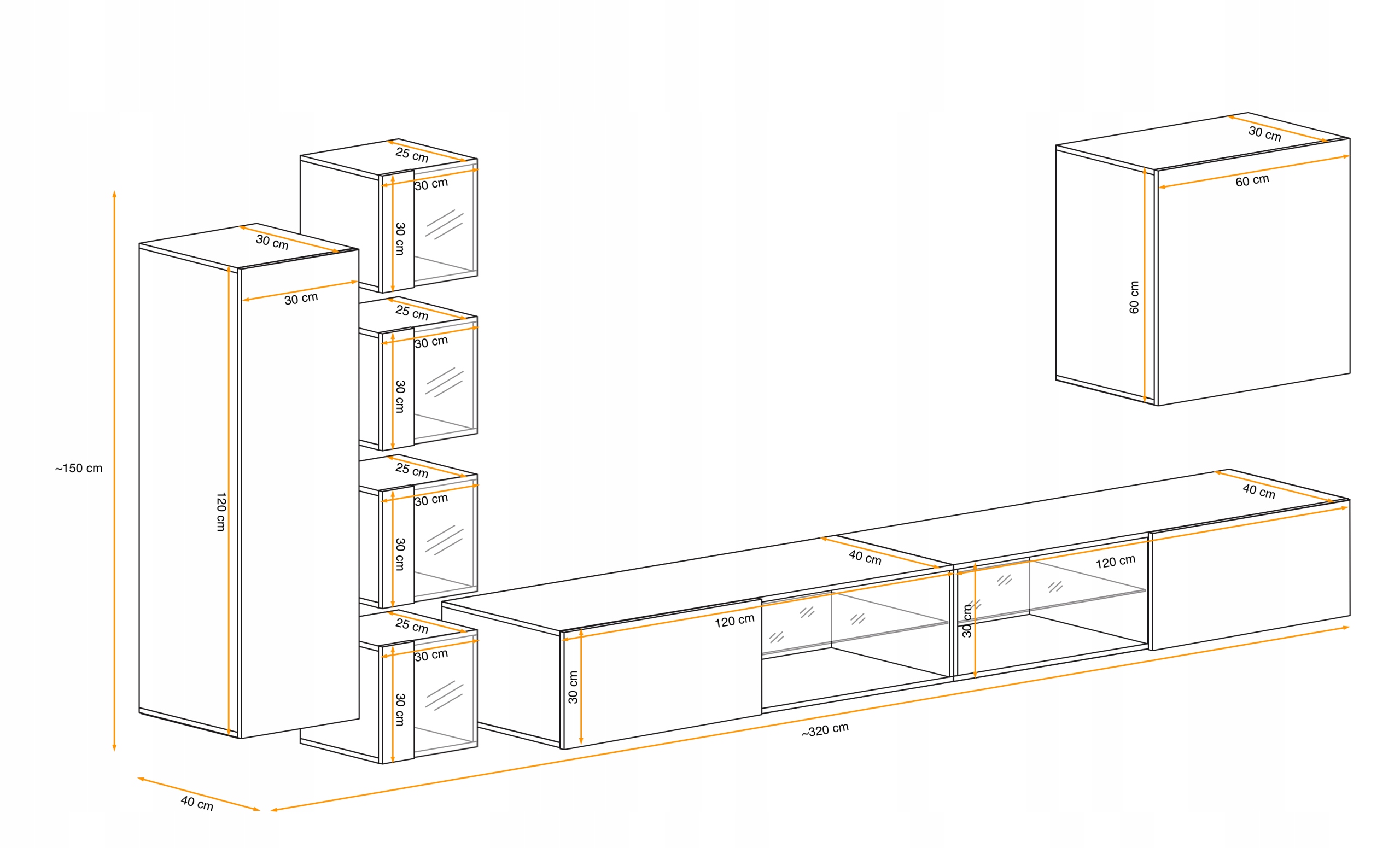 Загальні розміри (Ш/В/Г): ~320 см / ~150 см / 40 см