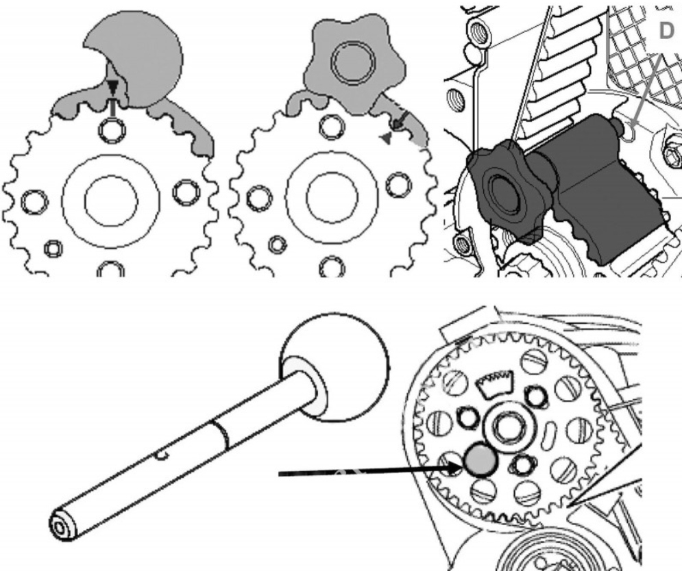Встановлення для блокування розподільного вала та колінчастого вала, де/монтажу валичних передач, заміни ременів та кріплення вирівнювального валу в зоні загальних речовин.