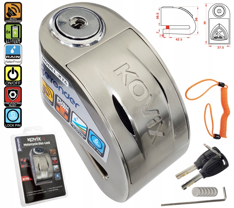 ЗАМОК ДЛЯ МОТОЦИКЛА З СИГНАЛІЗАЦІЄЮ!! KOVIX KT6 НАДІЙНИЙ