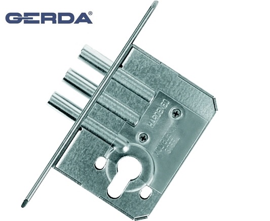 Замок врізний GERDA ZW550 3-контактний з циліндром (з сертифікатом). Замки найвищої якості виробництва GERDA - стійка до свердління, загартована кришка - клас безпеки 7. Замок надійно виготовлений відомою компанією з протизламних дверей. Замок врізний призначений для зовнішніх і внутрішніх дверей вагою до 100 кг як додатковий замок. Замикання на 3 ригелі діаметром 12 мм. В оригінальній упаковці: замок, фіксатор, набір гвинтів. Дуже хороше співвідношення ціни та якості - ми рекомендуємо цей продукт.