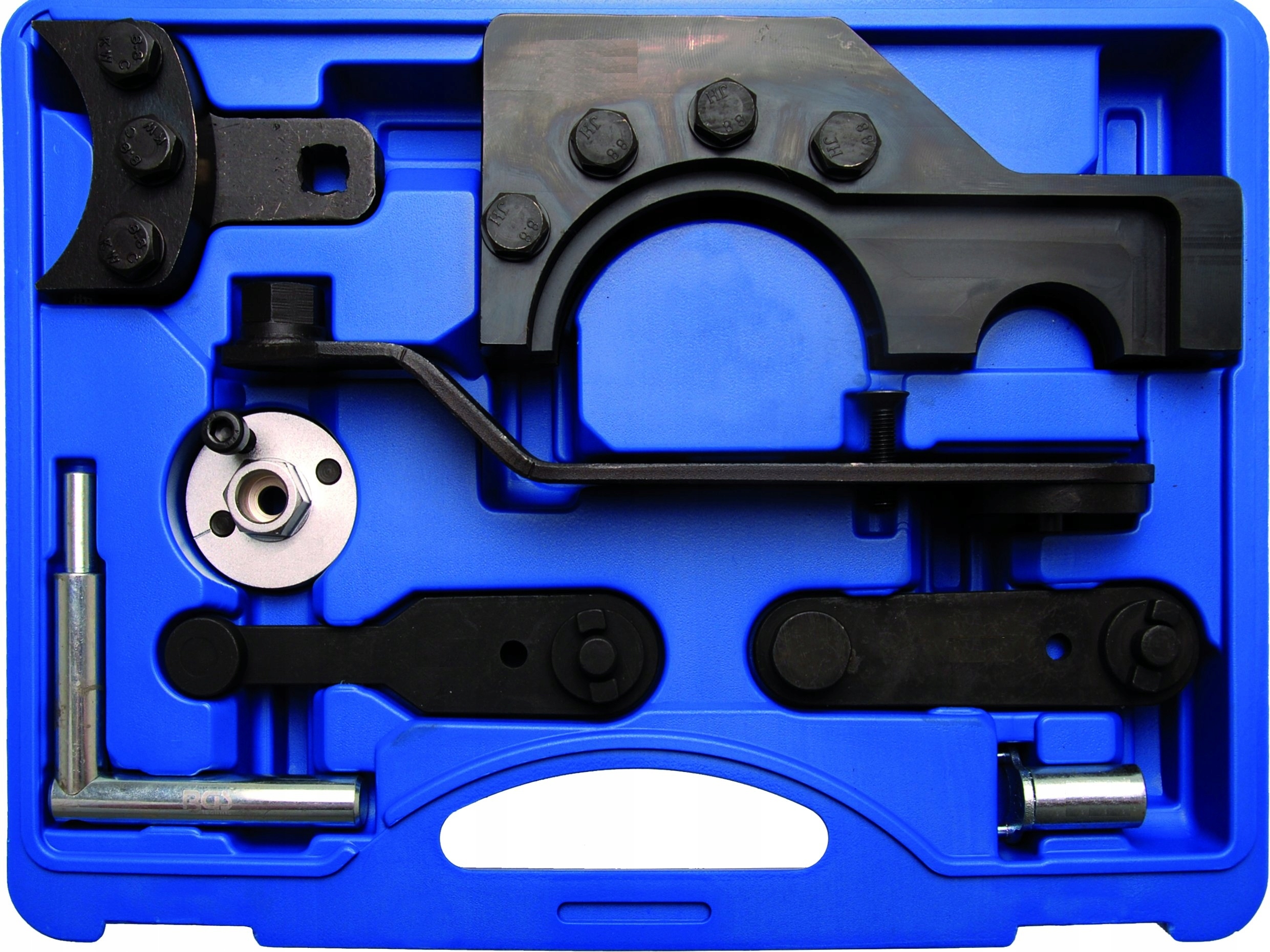 Також підходить для демонтажу та встановлення зубчастих механізмів 5 та 10 циліндрових двигунів, випущених після 2003 року. У комплект входить спеціальна розетка для повороту колінчастого вала і спеціальний ключ для блокування і натягувач колінчастого вала.