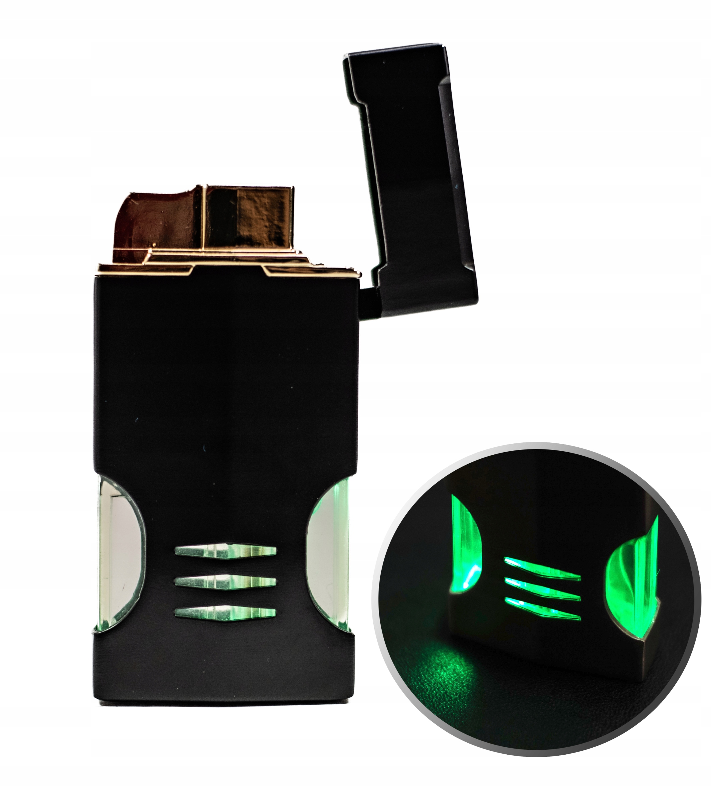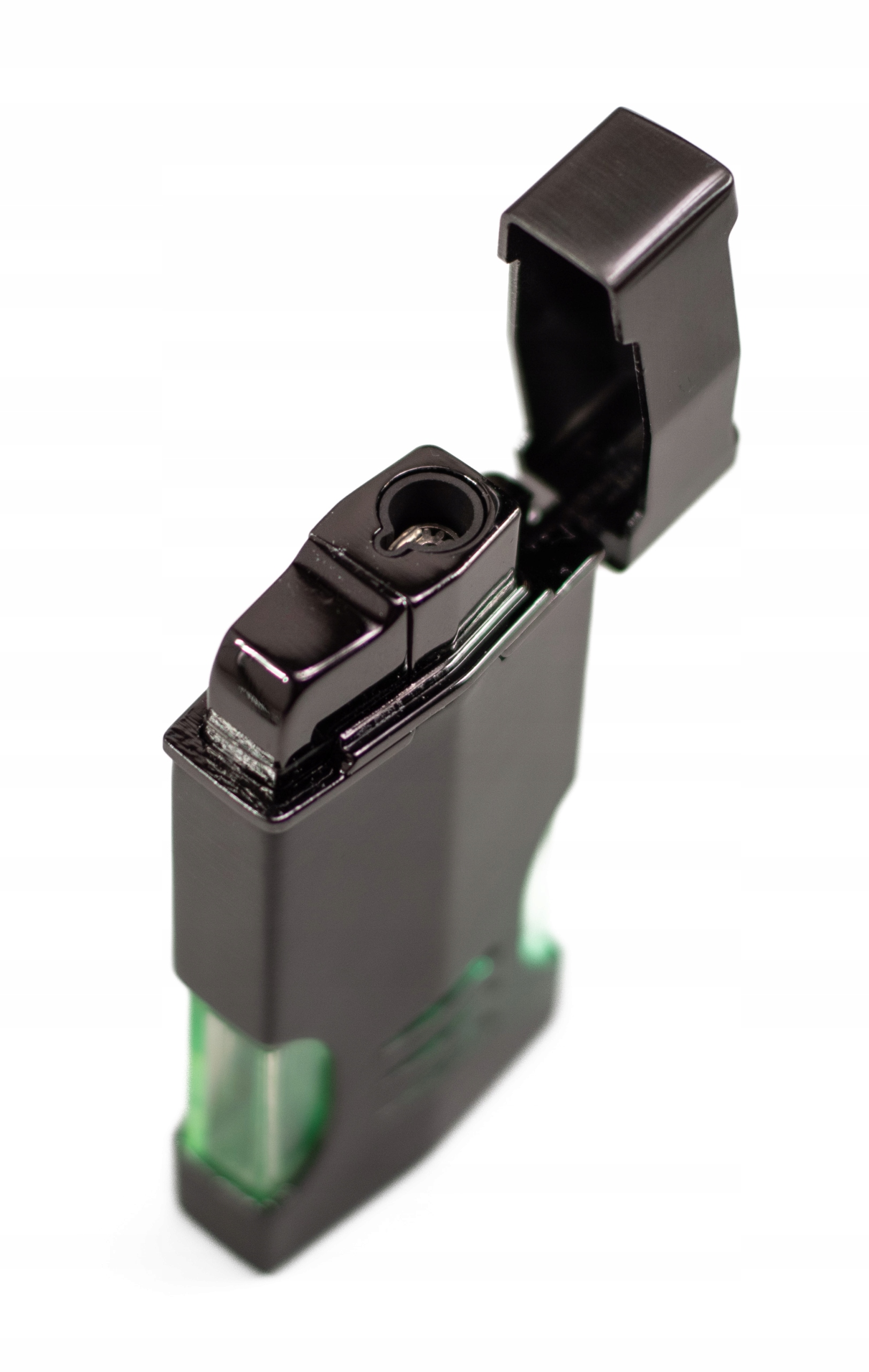 - Коли ви відкриваєте кришку запальнички, бензобак світиться зеленим кольором