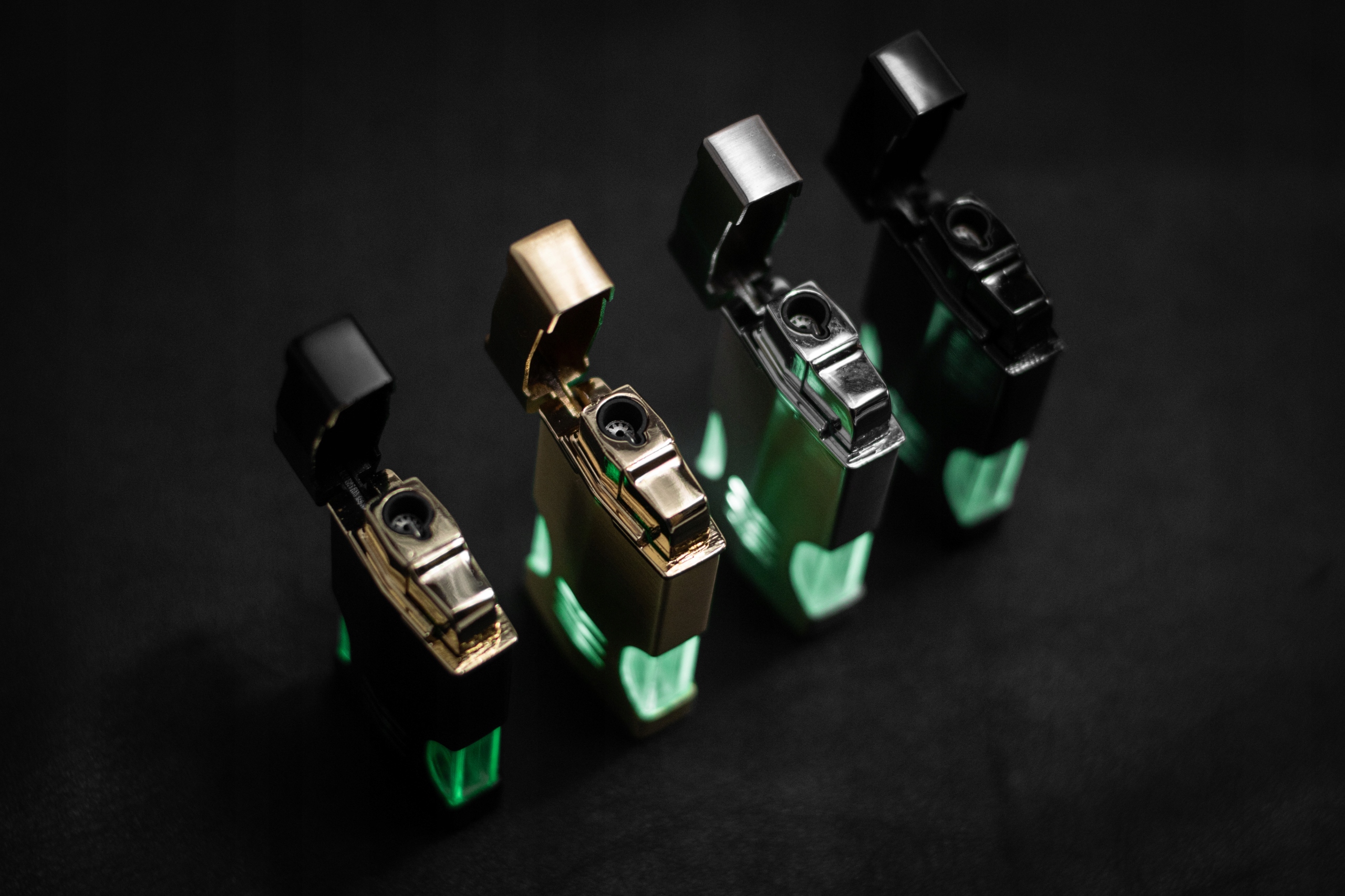 - Коли ви відкриваєте кришку запальнички, бензобак світиться зеленим кольором