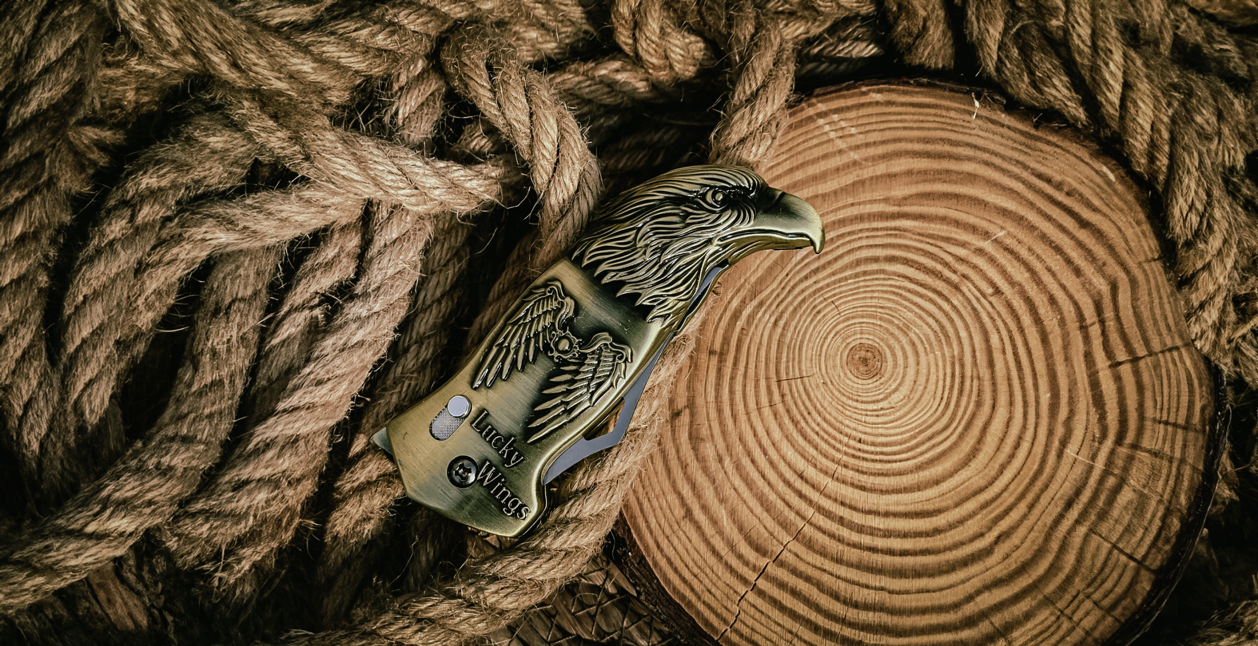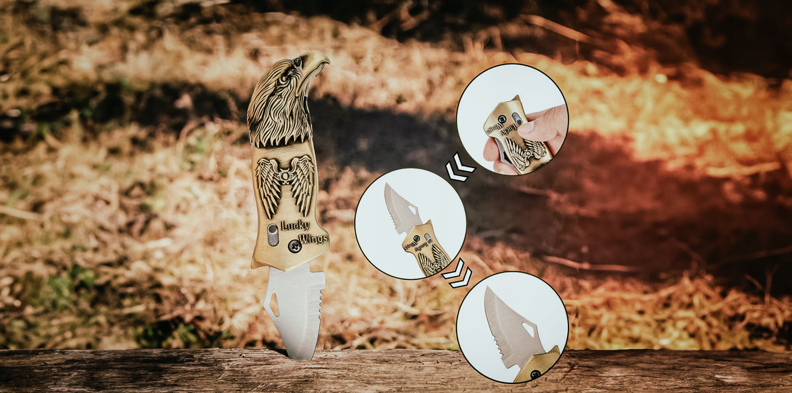 Запальничка 2 в 1 з перекидним ножем у формі голови орла