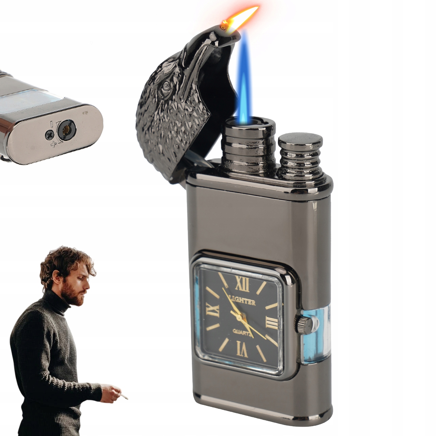 ЗАПАЛЬНИЧКА З ГОДИННИКОМ З ВБУДОВАНИМ ЦІФЕРБЛАТОМ, ВІТРОЗАНІХУВАЛЬНА