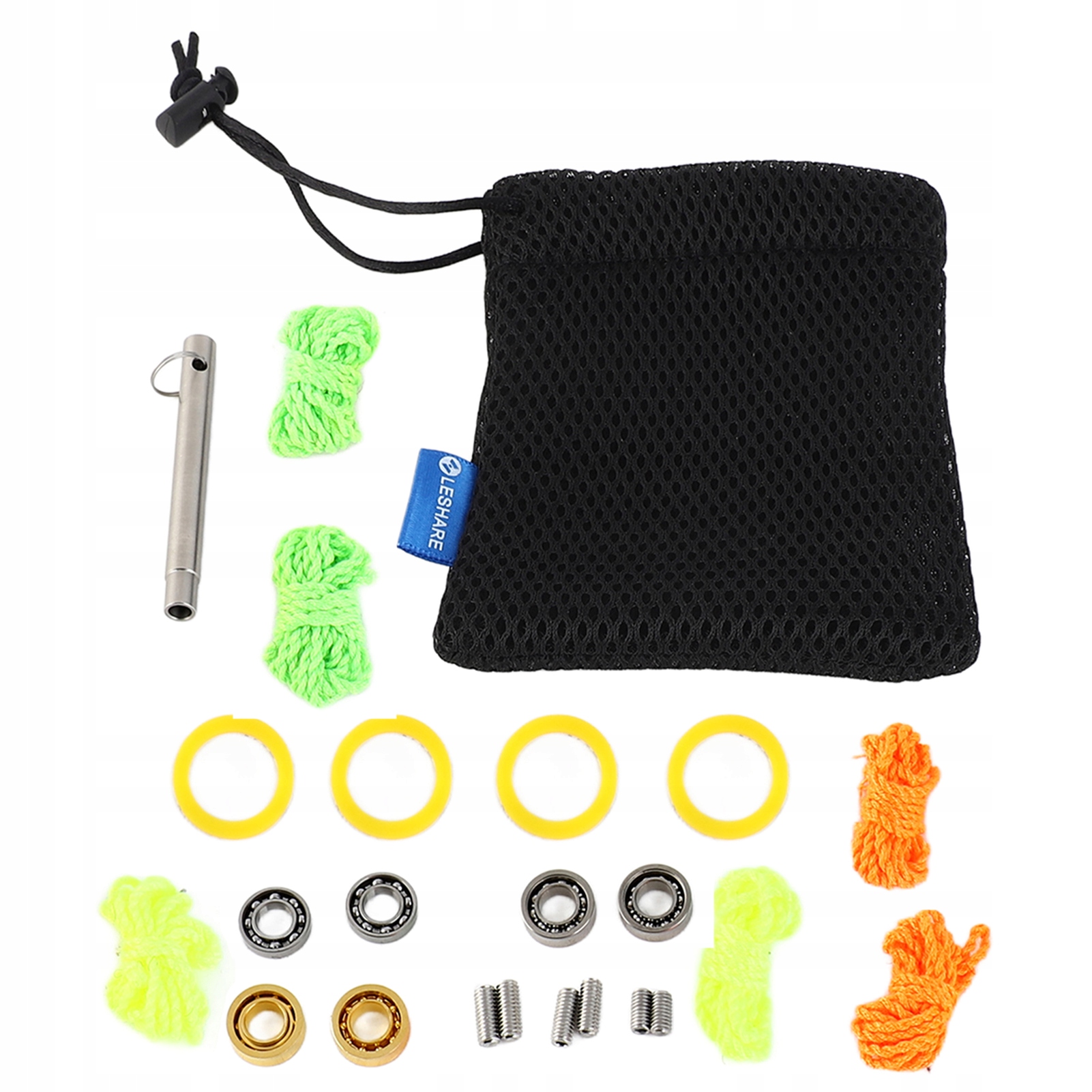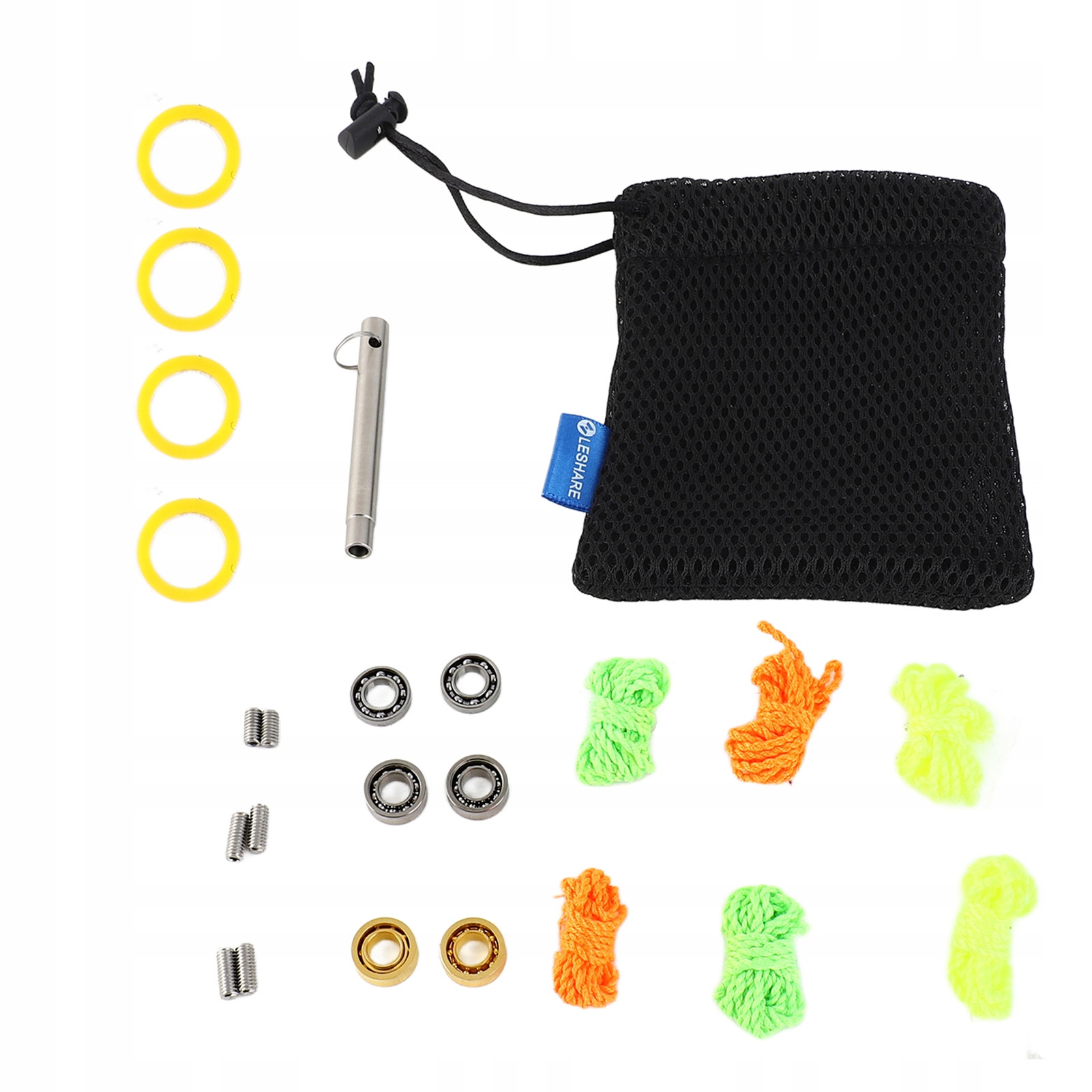 1. Змінні аксесуари Yoyo включають 2 чутливі підшипники Yoyo з 2 короткими осями, 4 нечутливі підшипники Yoyo з 4 довгими осями, 6 струн Yoyo, 1 знімач підшипників, 4 запасні кільця.