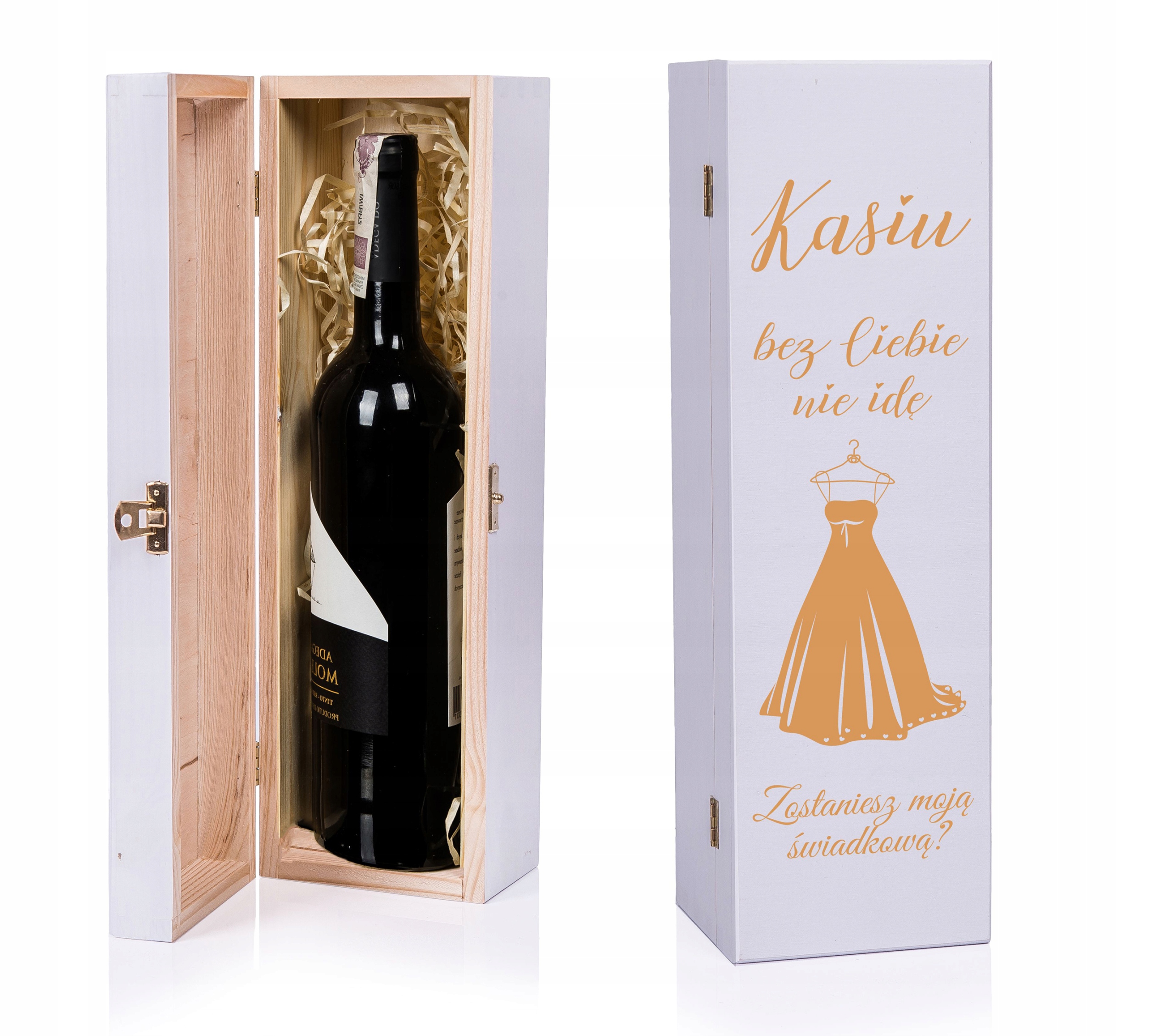 На аукціоні нижче ми представляємо вам запит на майбутнього СВІДКА в Форма дерев'яного ящика для вина. Запитання в такій формі неодмінно переконає вашого друга виконати цю важливу функцію на вашому святі. Здивуйте своїх свідків унікальною формою запрошення. Гравірування на дерев'яній коробці, безсумнівно, стане сувеніром на дуже довгий час. Цей подарунок викличе посмішку на обличчі кожного одержувача.