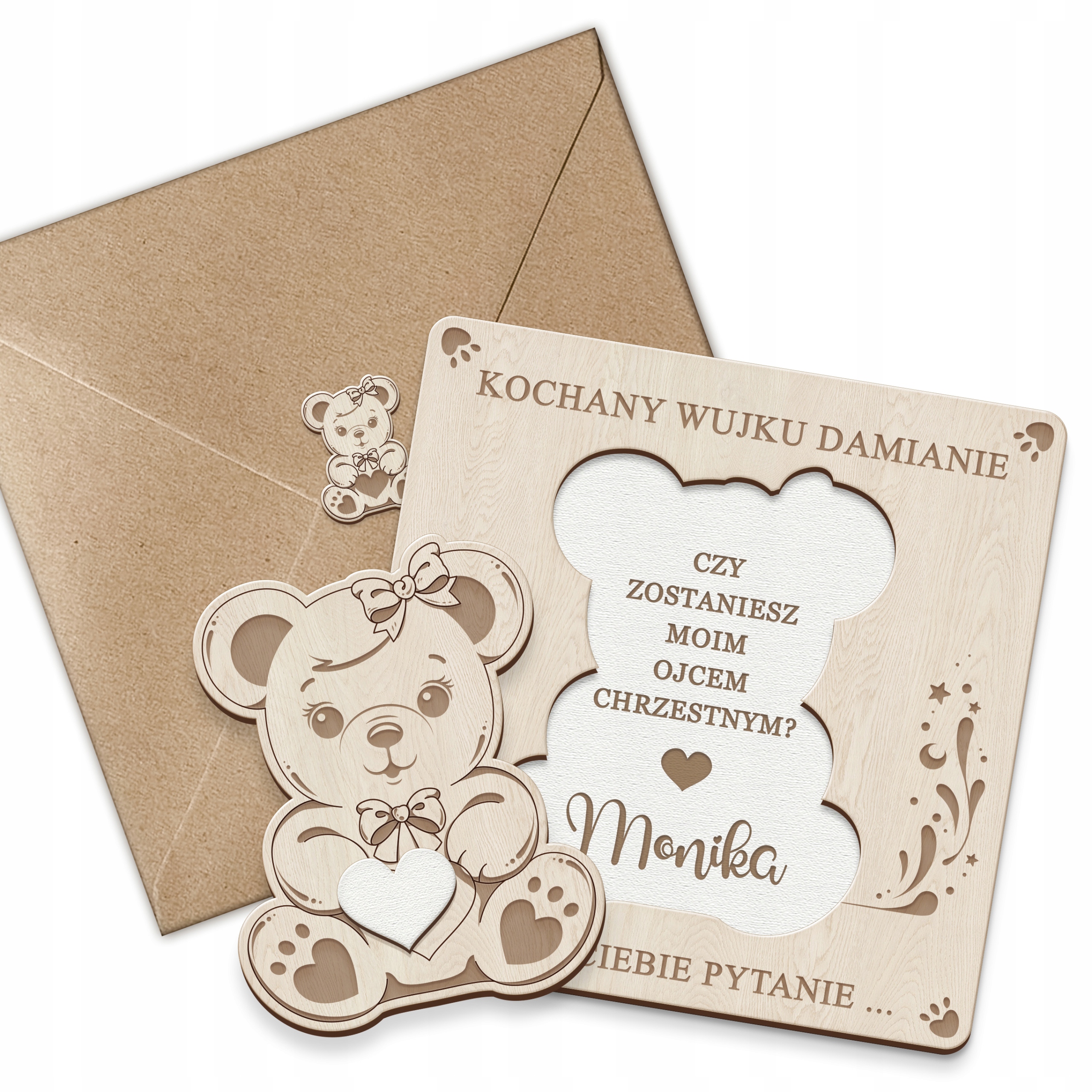Запрошення ЗАПИТ бути ХРЕСНОЮ МАМОЮ | ХРЕСНИК конверт ведмедик дівчинка