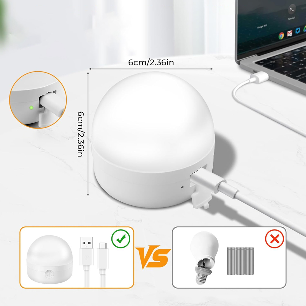 Зручне заряджання через USB: Легке заряджання за допомогою стандартного USB-кабелю, не виймаючи лампочку, заощаджуючи час і зусилля.
