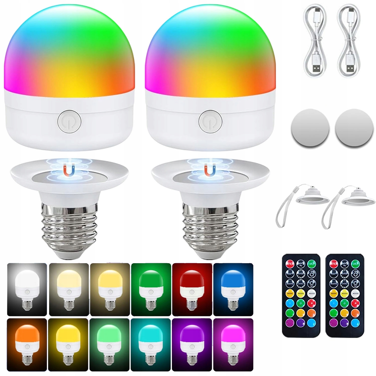 АККУМУЛЯТОРНА ЛАМПА E27 З ДИСТАНЦІЙНИМ КЕРУВАННЯМ 12 КОЛЬОРІВ ТАЙМЕР 2000MAH МАГНІТ