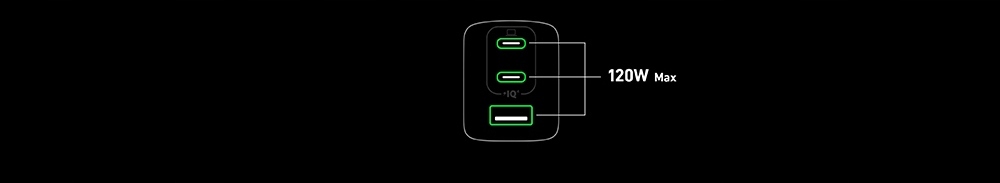 - USB-C1 + USB-C2 + USB -A: макс. 120 Вт