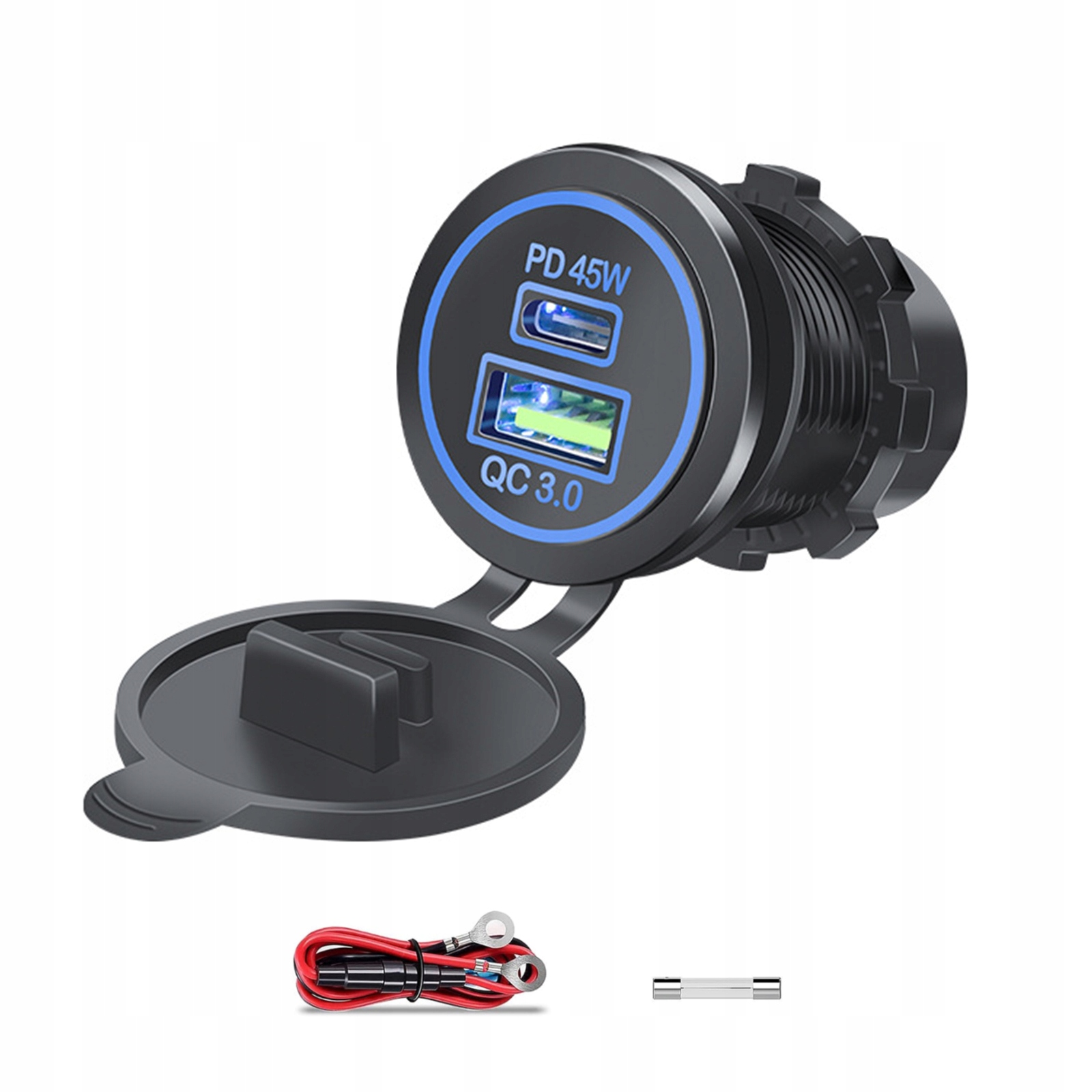 【Порт USB для заряджання 65 Вт QC&PD 3.0】Вбудований USB-порт 12-24 В має новітню інтелектуальну мікросхему підсилення,Два порти можна швидко заряджати одночасно,Максимальна загальна потужність становить 65 Вт (45 Вт PD+ 18 у QC3. 0). Завдяки розробленим портам QC 3.0 USB і PD USB-C зарядний пристрій може живити більшість пристроїв із кабелями з інтерфейсом USB, Type C тощо, таких як смартфони, планшети, камери, навушники Bluetooth, розумні браслети тощо.