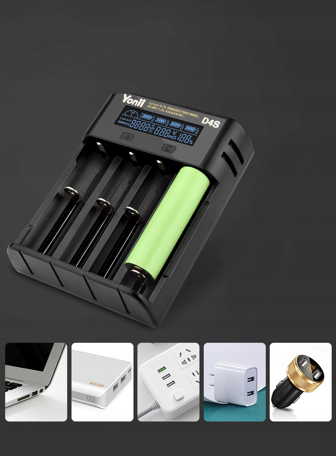 1. Повністю сумісна з більшістю літій-іонних акумуляторів 3,6 В/3,7 В, таких як Ni-MH/Ni-CD акумулятори, такі як AAAA/AAA/AA/A/SC/C/F6.