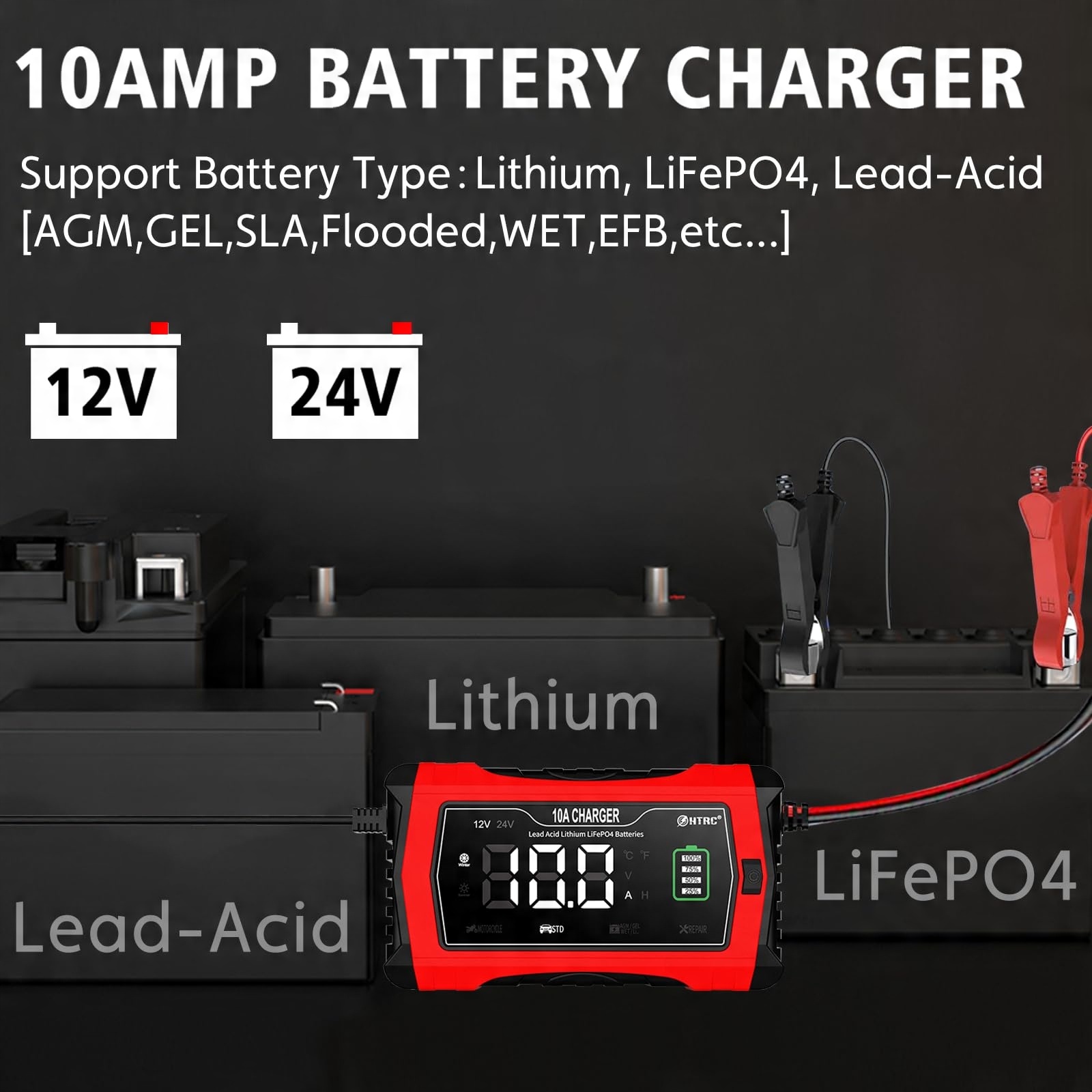 ✅ Підтримує акумулятори 12 В і 24 В, підходить для автомобілів і мотоциклів.