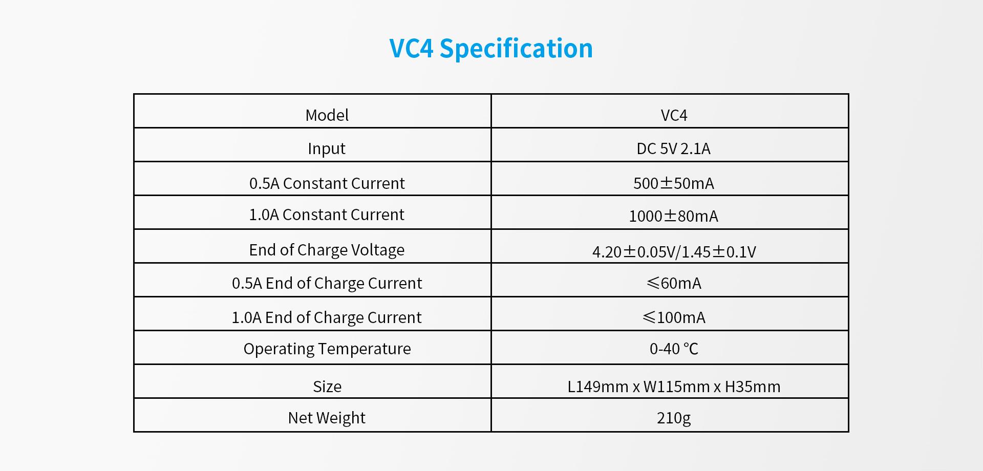 Особливості продукту Лі-іон та NIMH XTAR VC4