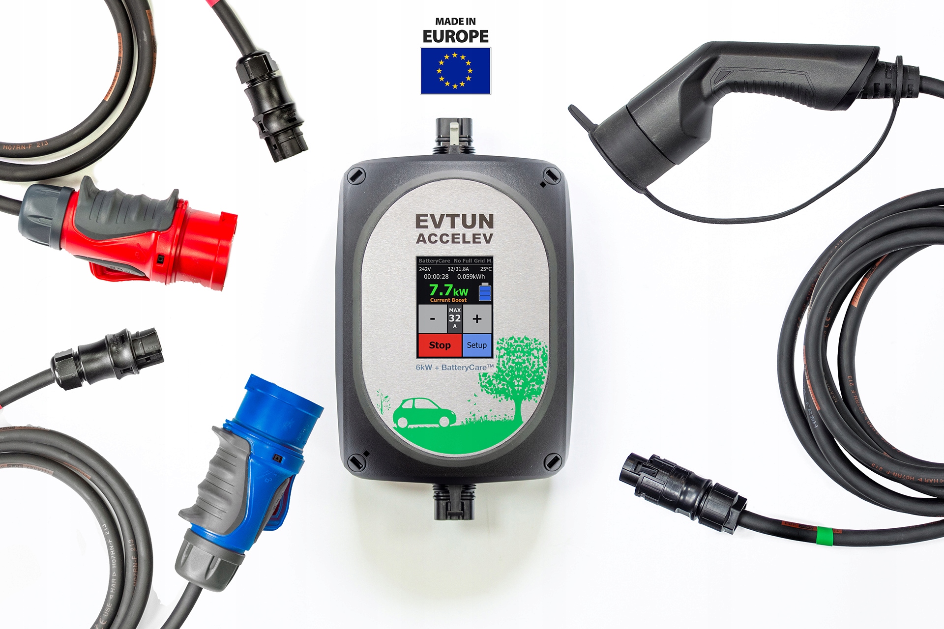Accelev v2 EVSE керується мікропроцесором, має сенсорний екран, оновлення програмного забезпечення, які збагачують зарядний пристрій новими функціями, виконуються через USB. Зарядний пристрій має активне охолодження.