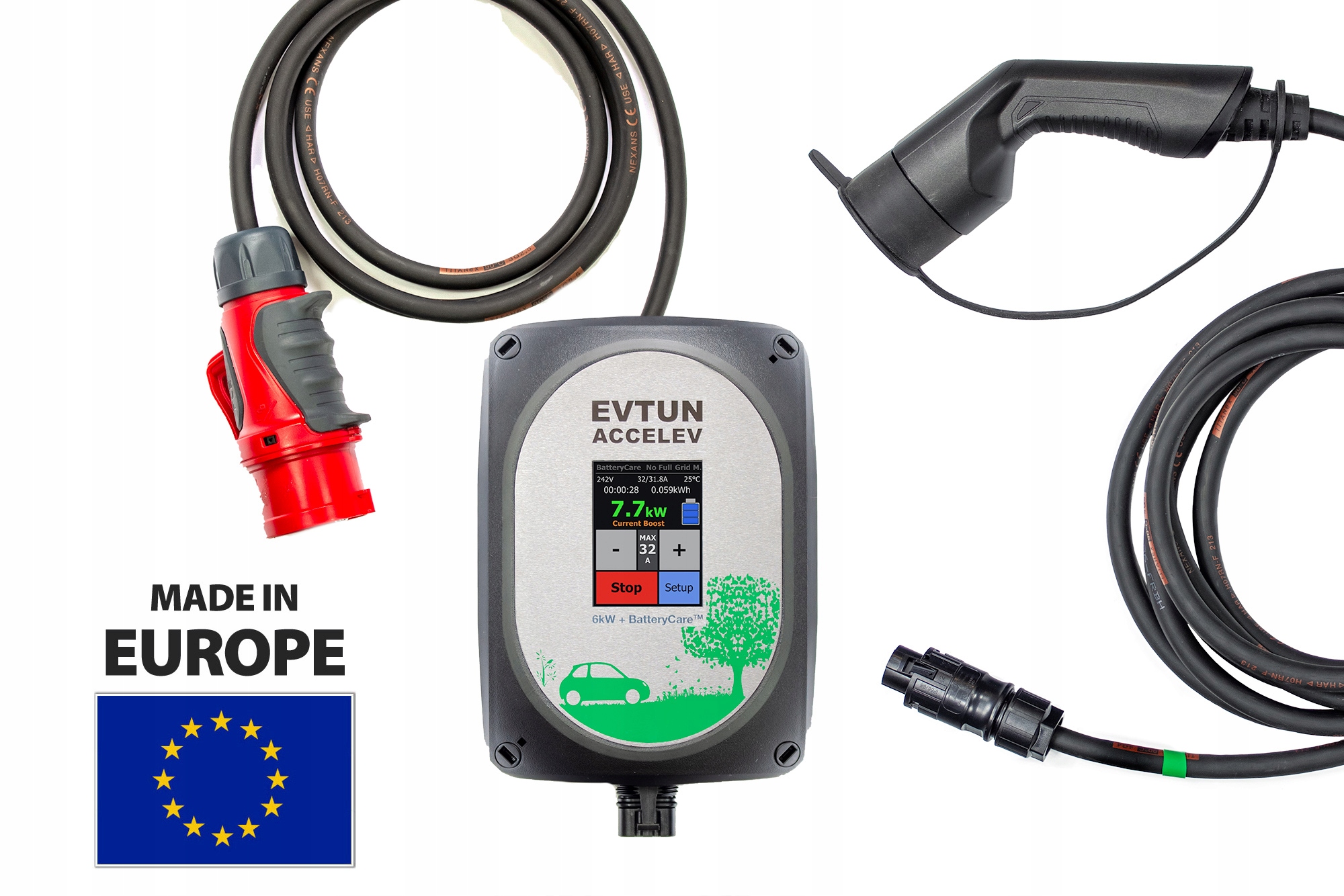 Більше ніяких перегораючих запобіжників. Accelev — це вдосконалений водонепроникний зарядний пристрій змінного струму, керований процесором, з функціями, недоступними в інших зарядних пристроях. Він має унікальні режими для моніторингу навантаження на мережу (зменшення потужності) і безпечний, повна зарядка BatteryCare™, що подовжує термін служби батареї, і без повної зарядки.
