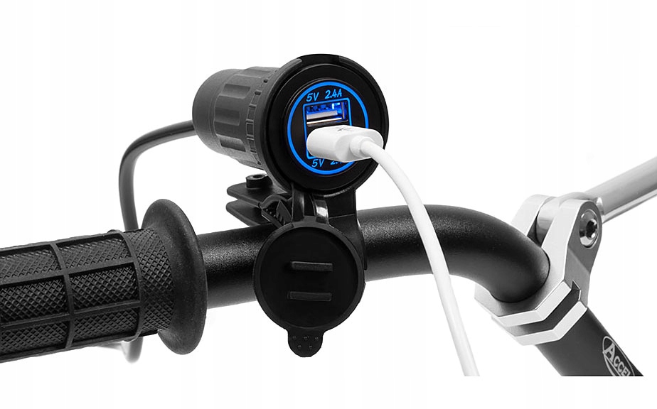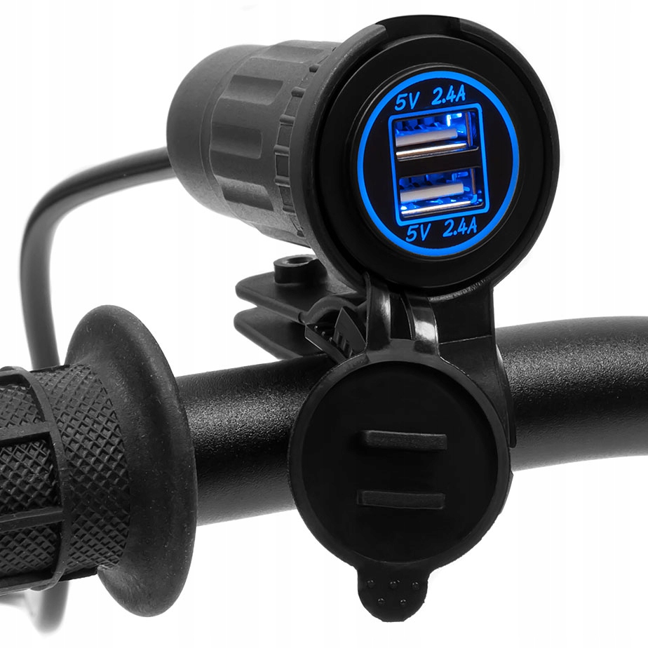 Наші універсальні 2 x USB розетки напругою 5 В і силою струму 2,4 А в комплекті з кріпленням на кермо - це понад усезручність і безпека! Завдяки використанню в розетці сучасного чіпа ви можете легко заряджати два різних пристрої одночасно, а оптимальні параметри струму підбираються автоматично.