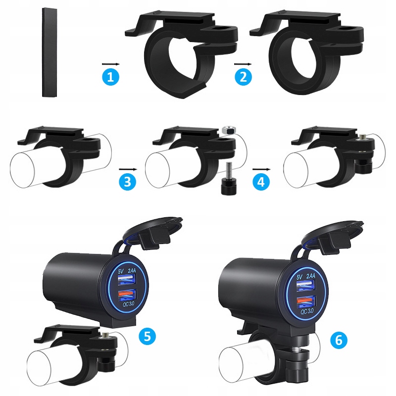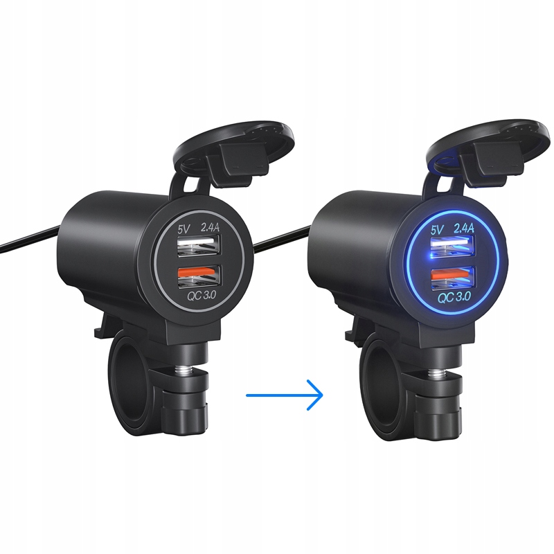 ЗАРЯДНИЙ ПРИСТРІЙ ДЛЯ МОТОЦИКЛА USB 2.4A + USB QC3.0 + КНОПКА