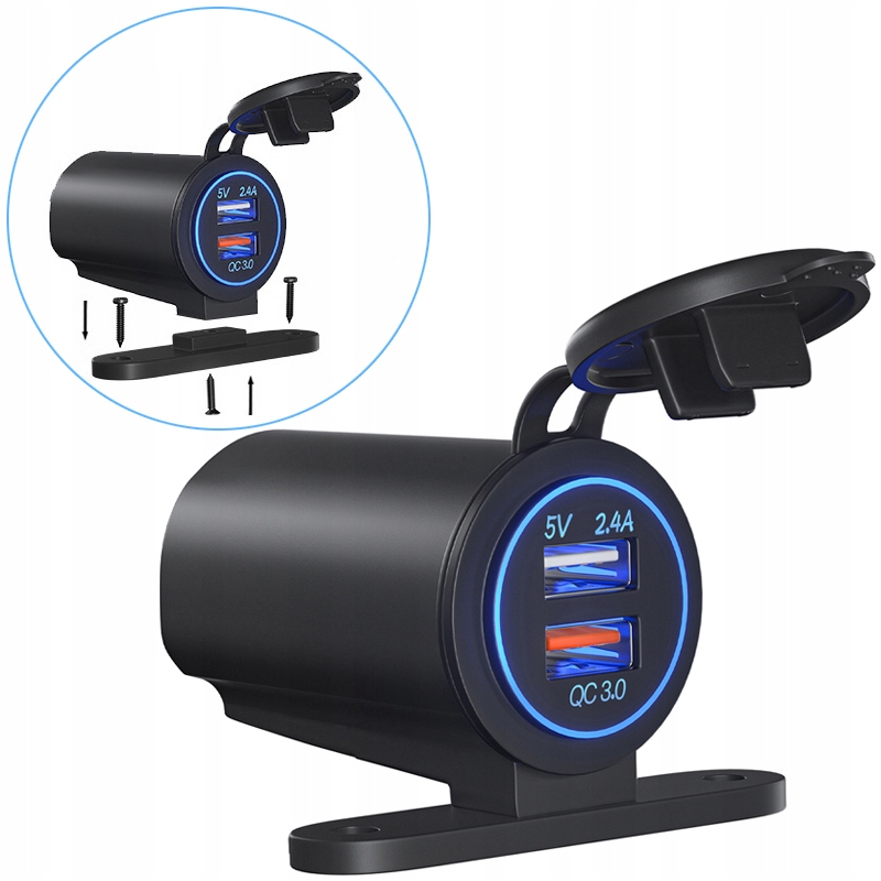 ☑ Виріб оснащено зарядним портом USB QC3.0 + USB 2.4 A, який можна використовувати для мобільних телефонів , планшети, GPS тощо.