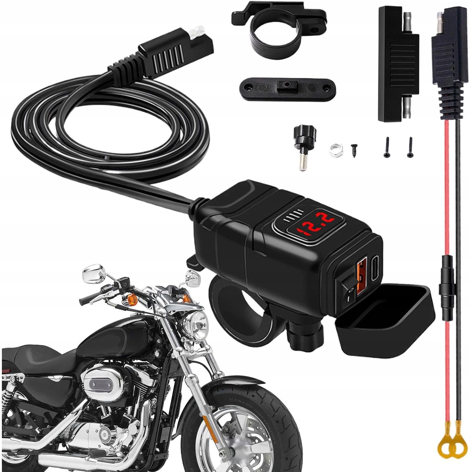 ✨ Зарядний пристрій для мотоцикла PD+QC3.0 30 Вт USB-C+A зі світлодіодним вольтметром. Водонепроникний, 12-24 В, швидка зарядка та безпечне встановлення.